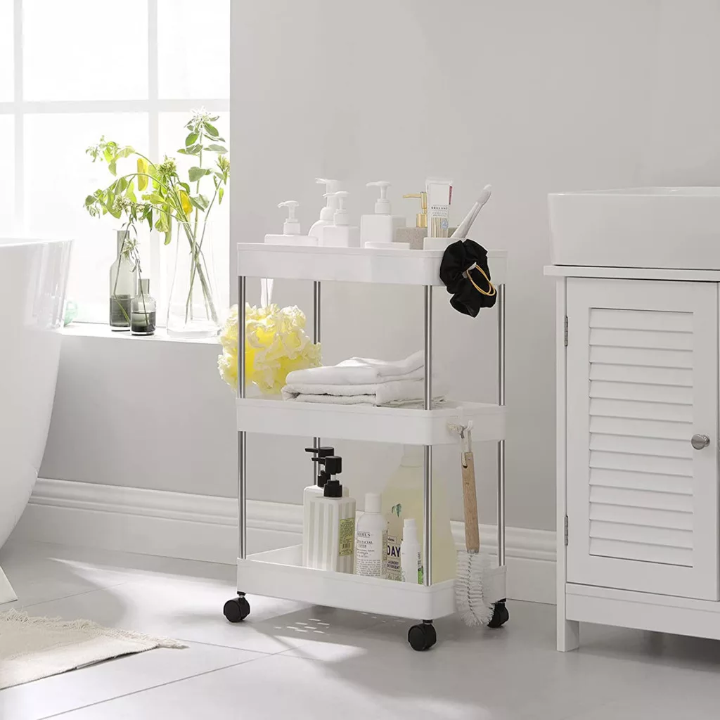 SONGMICS 3-Szintes Gurulós Tárolókocsi Fehér PP Műanyag