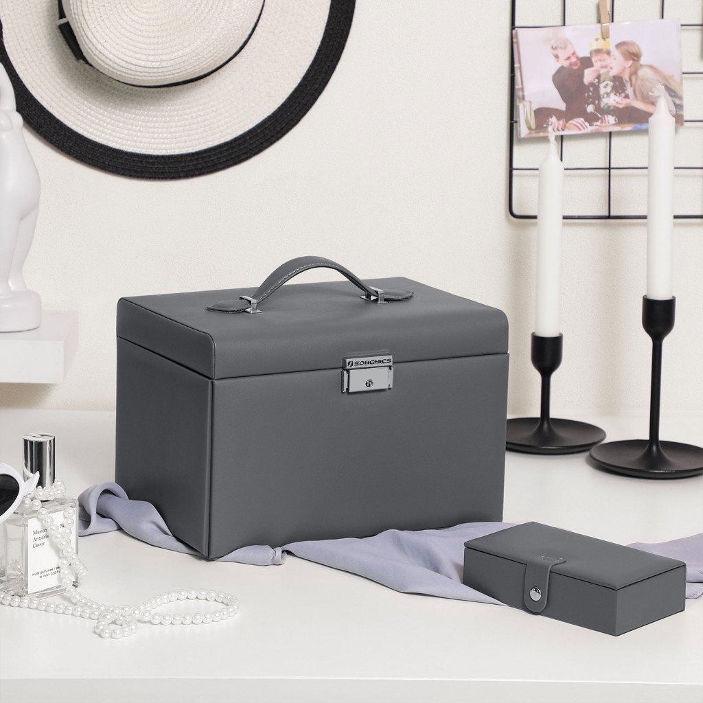SONGMICS 3 Szintes Luxus Ékszertartó Doboz Utazótokkal Szürke