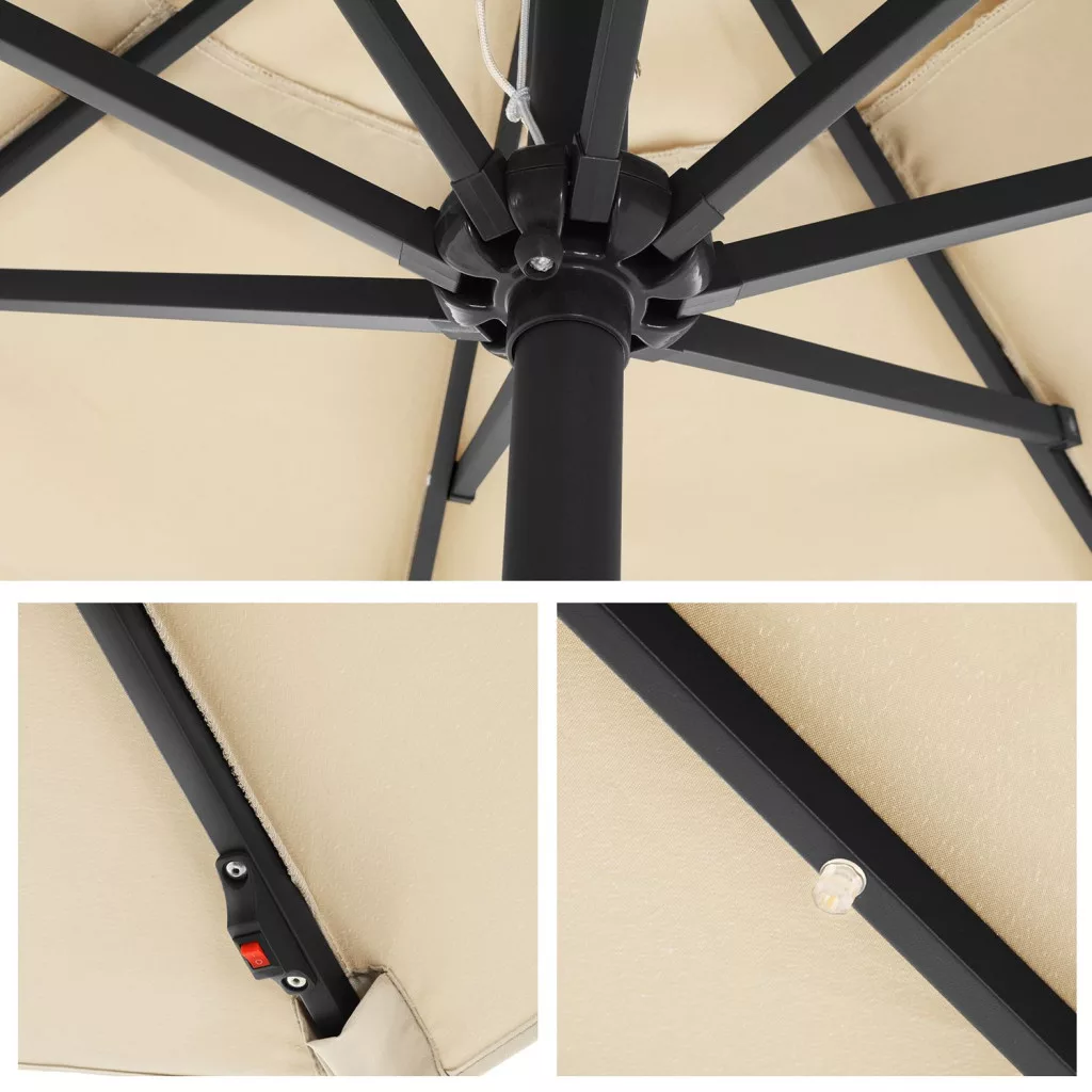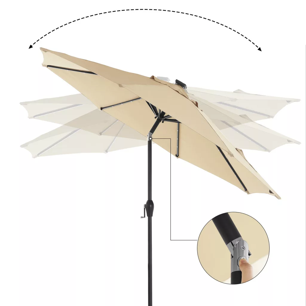SONGMICS 3 méteres Napelemes LED Kerti Napernyő UPF 50+ Védelemmel Bézs