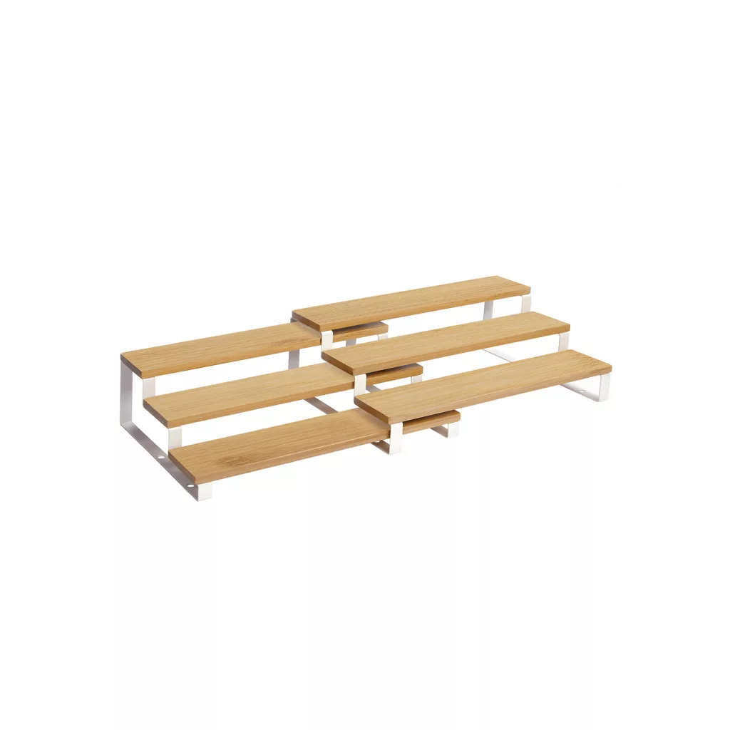 Rendszerezze fűszereit stílusosan ezzel a 2 darabos, 3-szintes bambusz fűszertartó készlettel. Bővíthető kialakítása és természetes anyagai tökéletes megoldást kínálnak konyhaszekrényébe vagy munkalapjára.