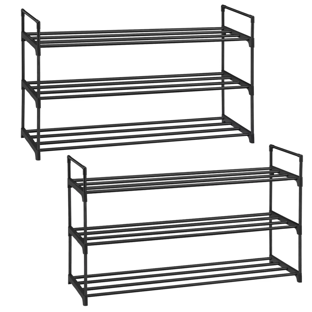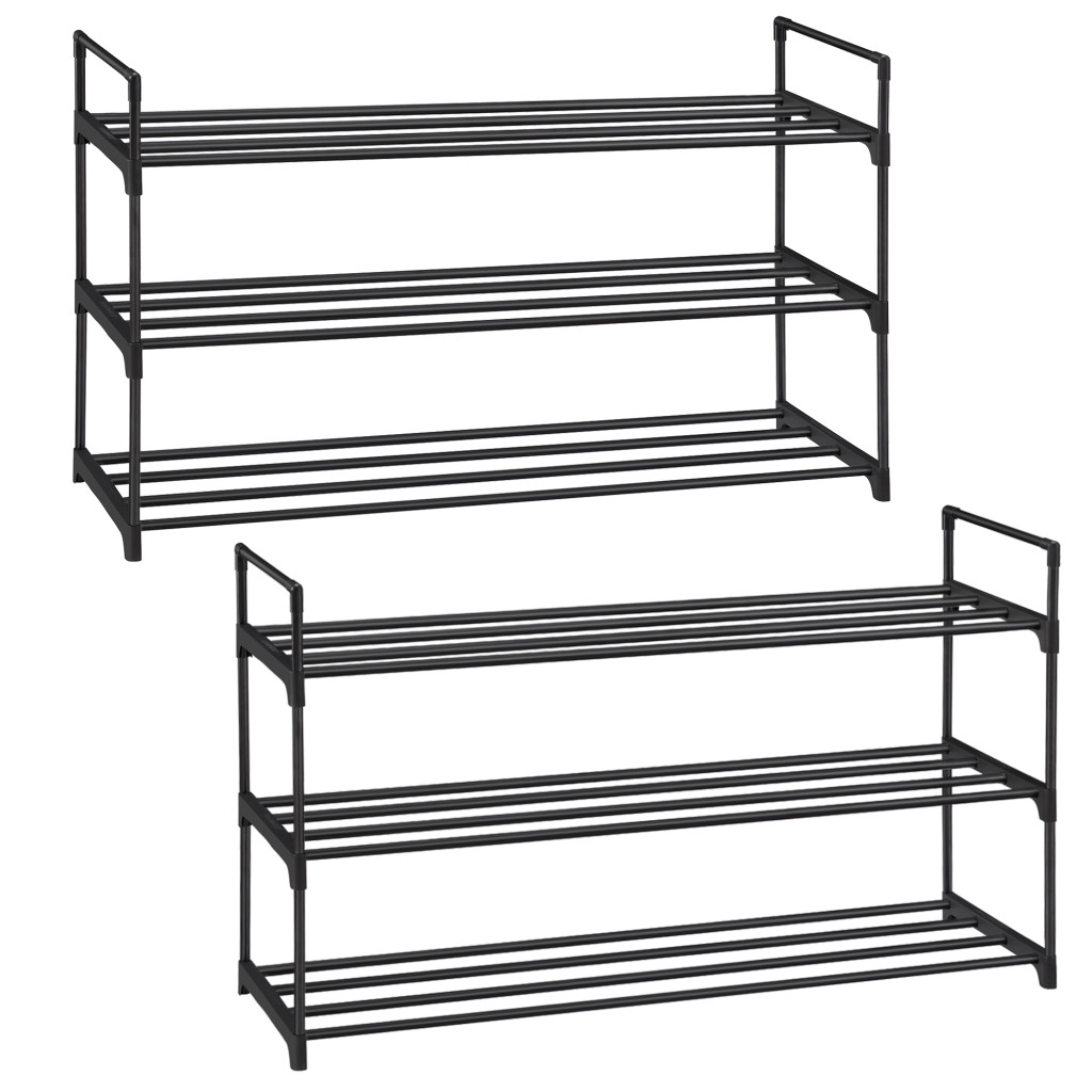 SONGMICS 3 szintes cipőtartó állvány fém fekete rakásolható