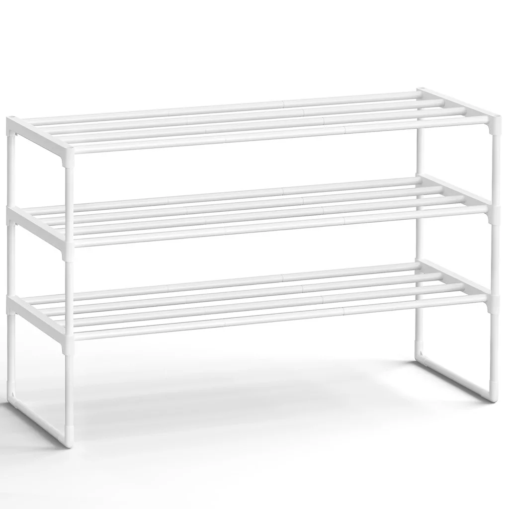 SONGMICS 3 szintes cipőtartó állvány fém gyöngyház fehér