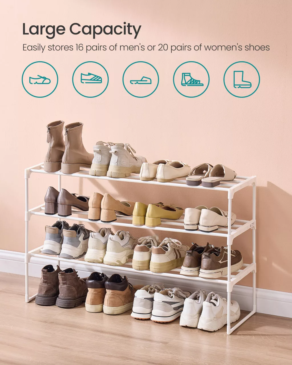 • Akár 20 pár cipő tárolása: A három tágas polc elegendő helyet biztosít a teljes cipőgyűjtemény rendezett tárolásához, beleértve a magasabb szárú bokacsizmákat is