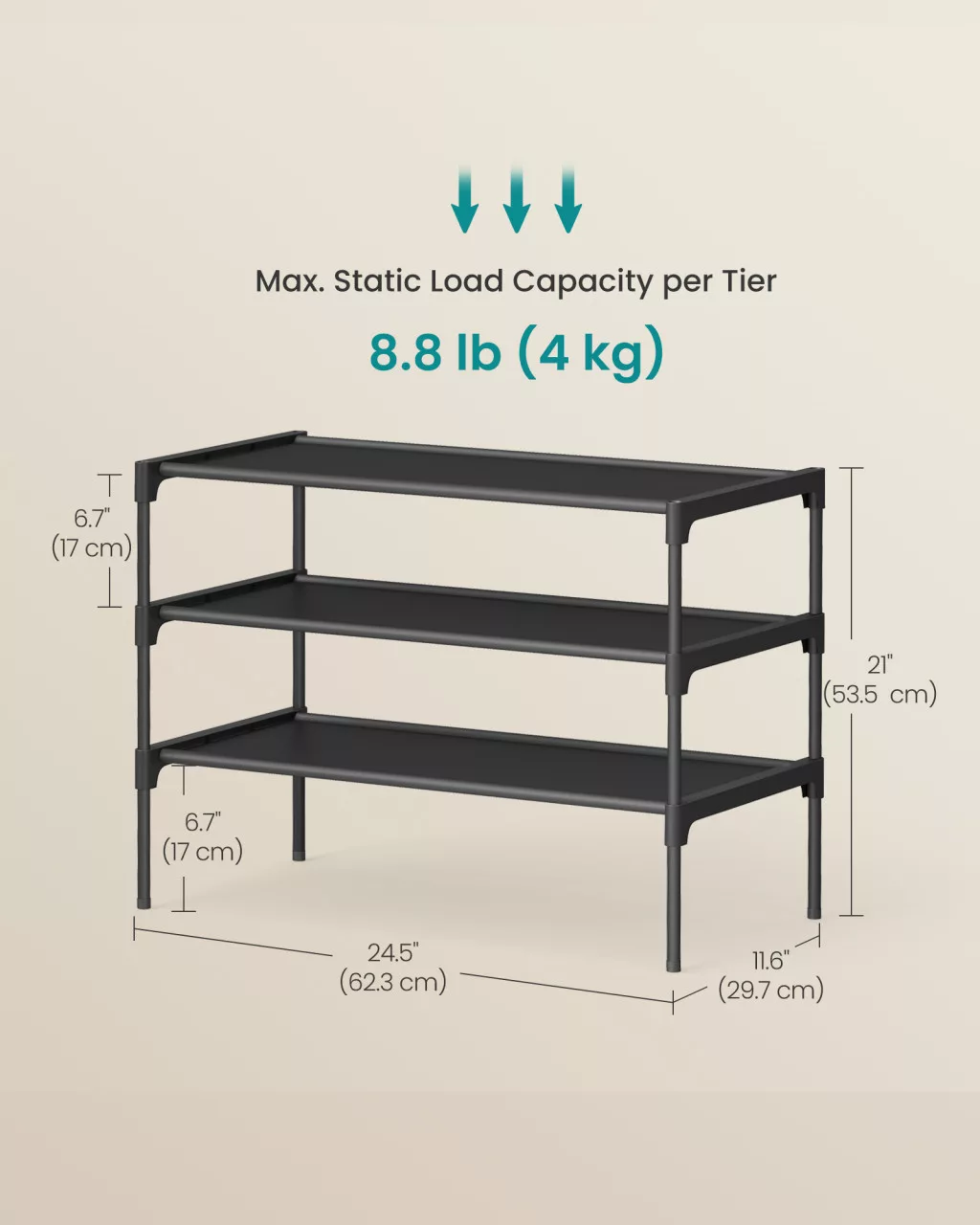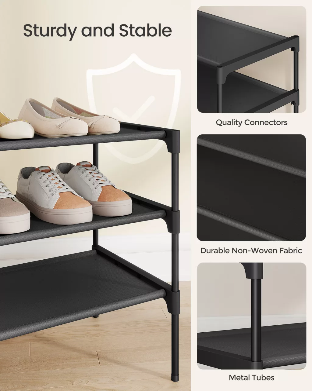 SONGMICS 3 szintes cipőtartó polc fém vázzal fekete