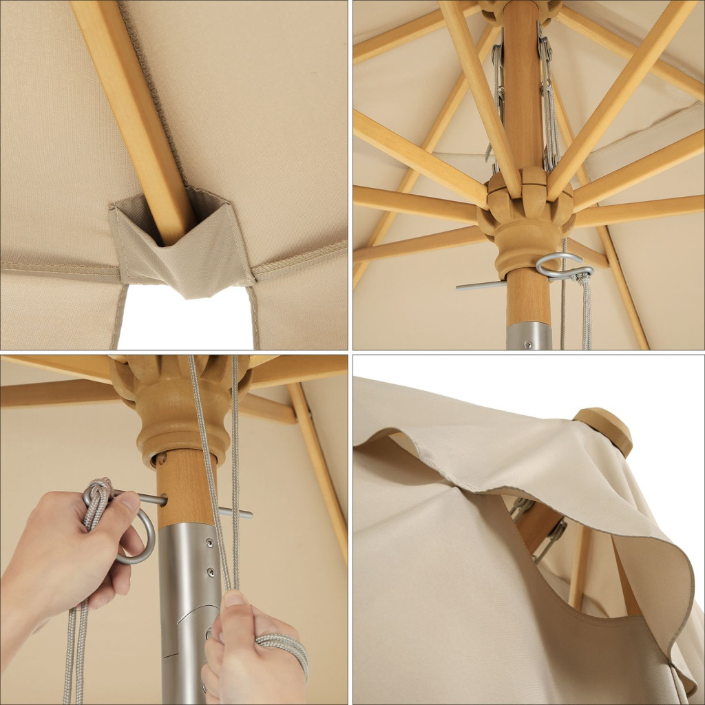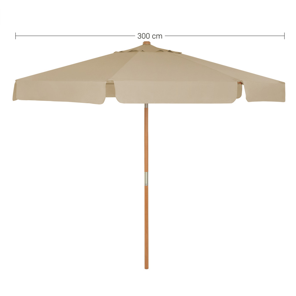 Elegáns, 3 méteres kerti napernyő bükkfa rúddal és állítható dőlésszöggel, kiváló UV-védelemmel a gondtalan kültéri pihenéshez.