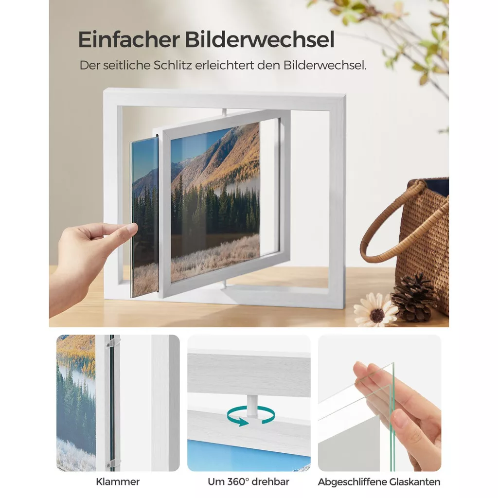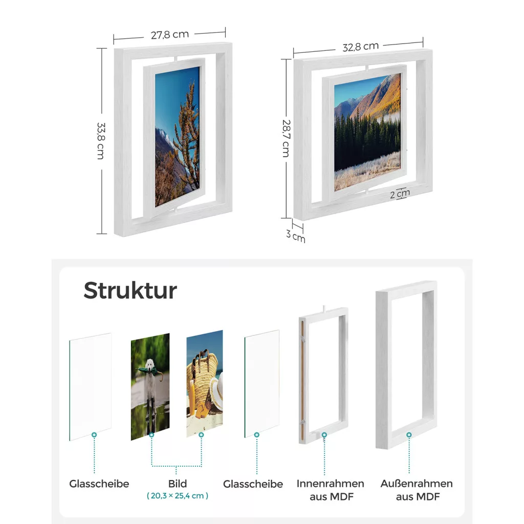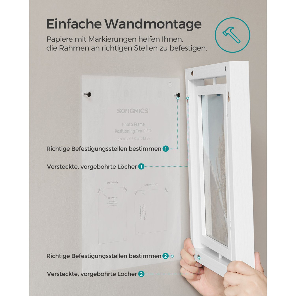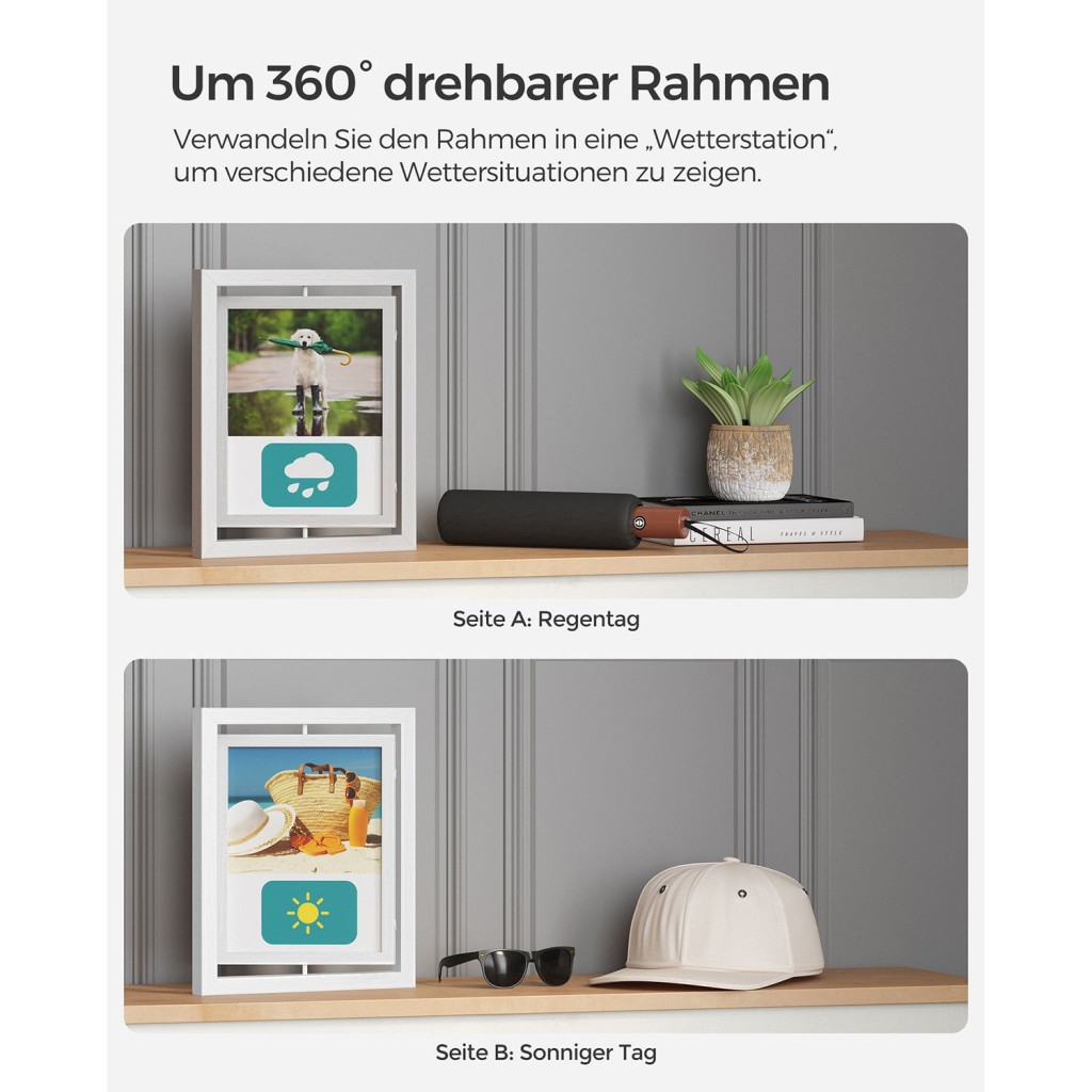 SONGMICS 360° Forgatható Fehér Képkeret Szett MDF Üveglapokkal