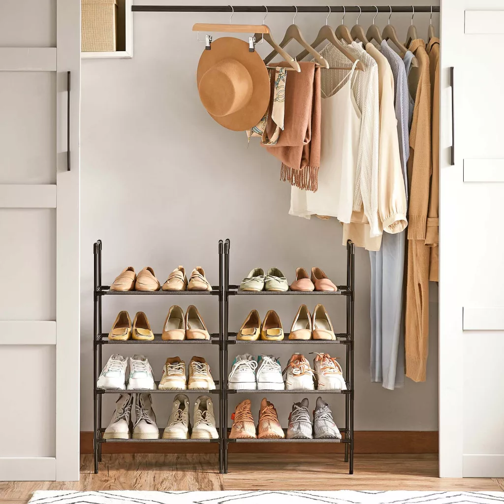 SONGMICS 4-Szintes Cipőtároló Állvány Szett Fém Vázzal Fekete