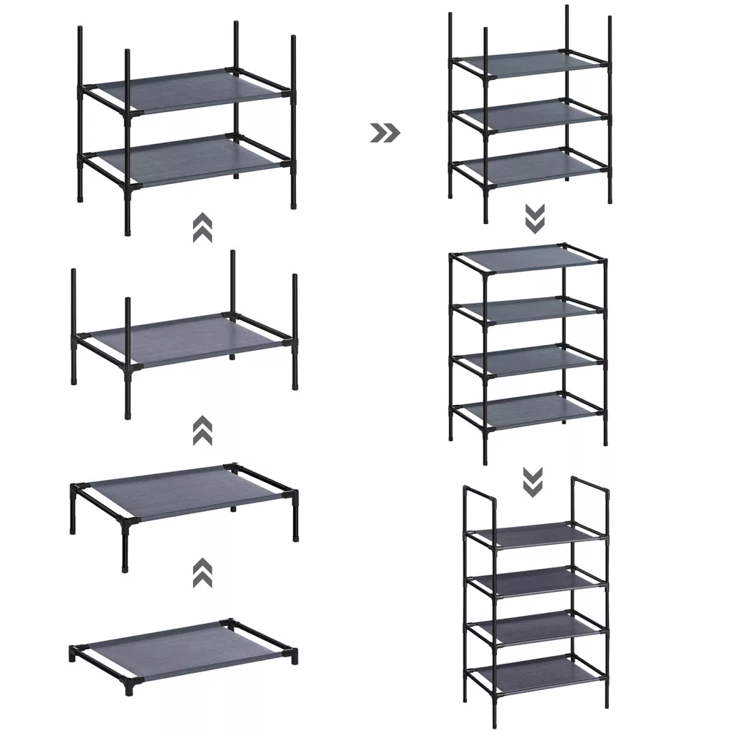 SONGMICS 4-Szintes Cipőtároló Szett Fém Vázzal Szürke