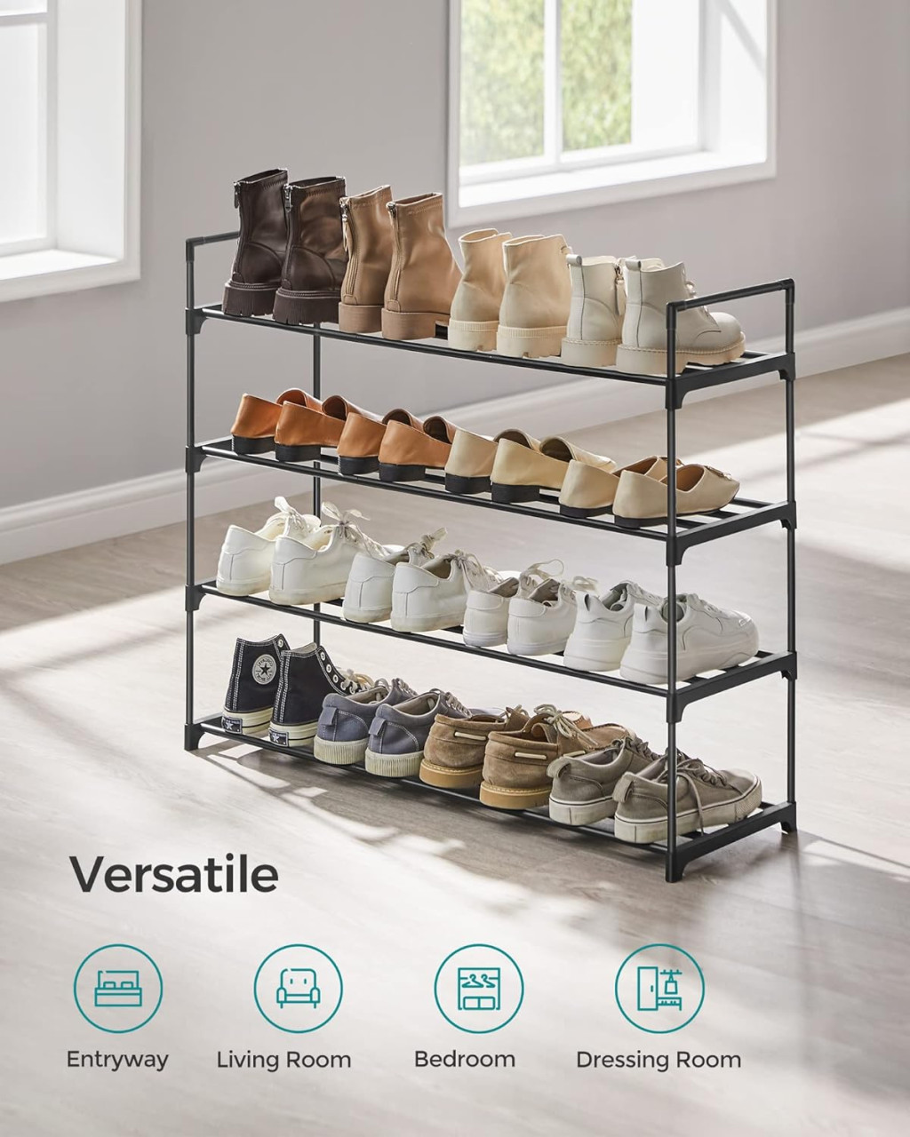 SONGMICS 4-Szintes Fém Cipőtároló Állvány Fekete