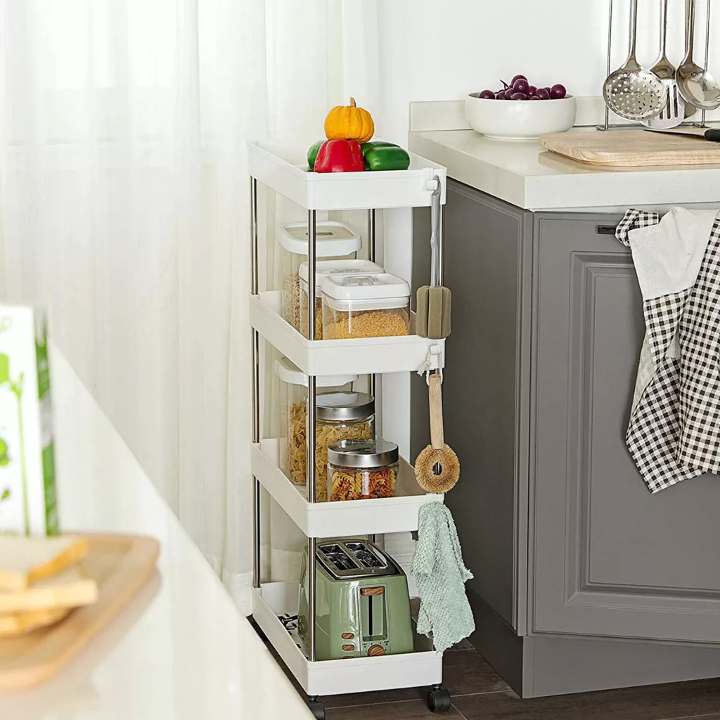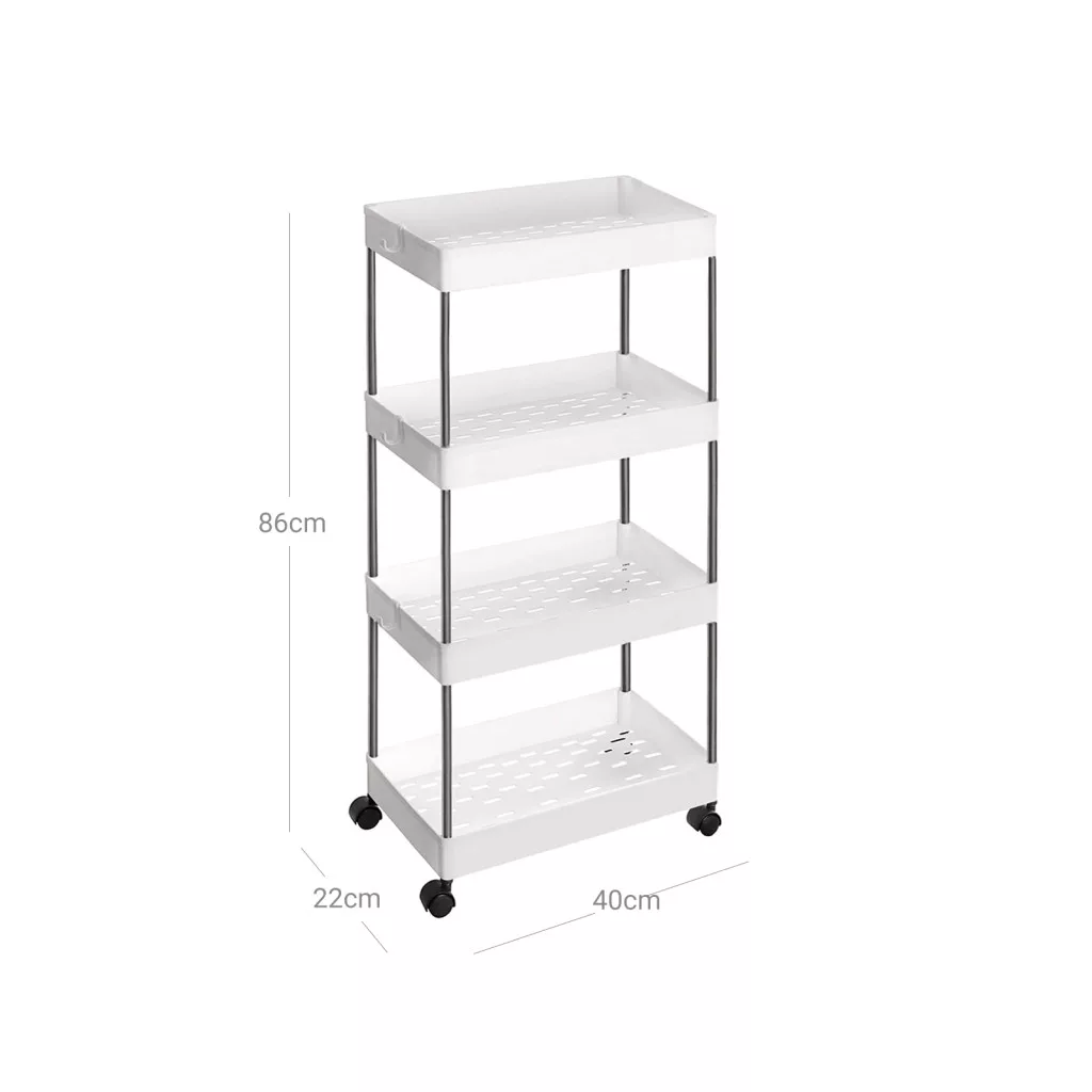 SONGMICS 4-Szintes Gurulós Tárolókocsi Fehér Polipropilén Rendszerező