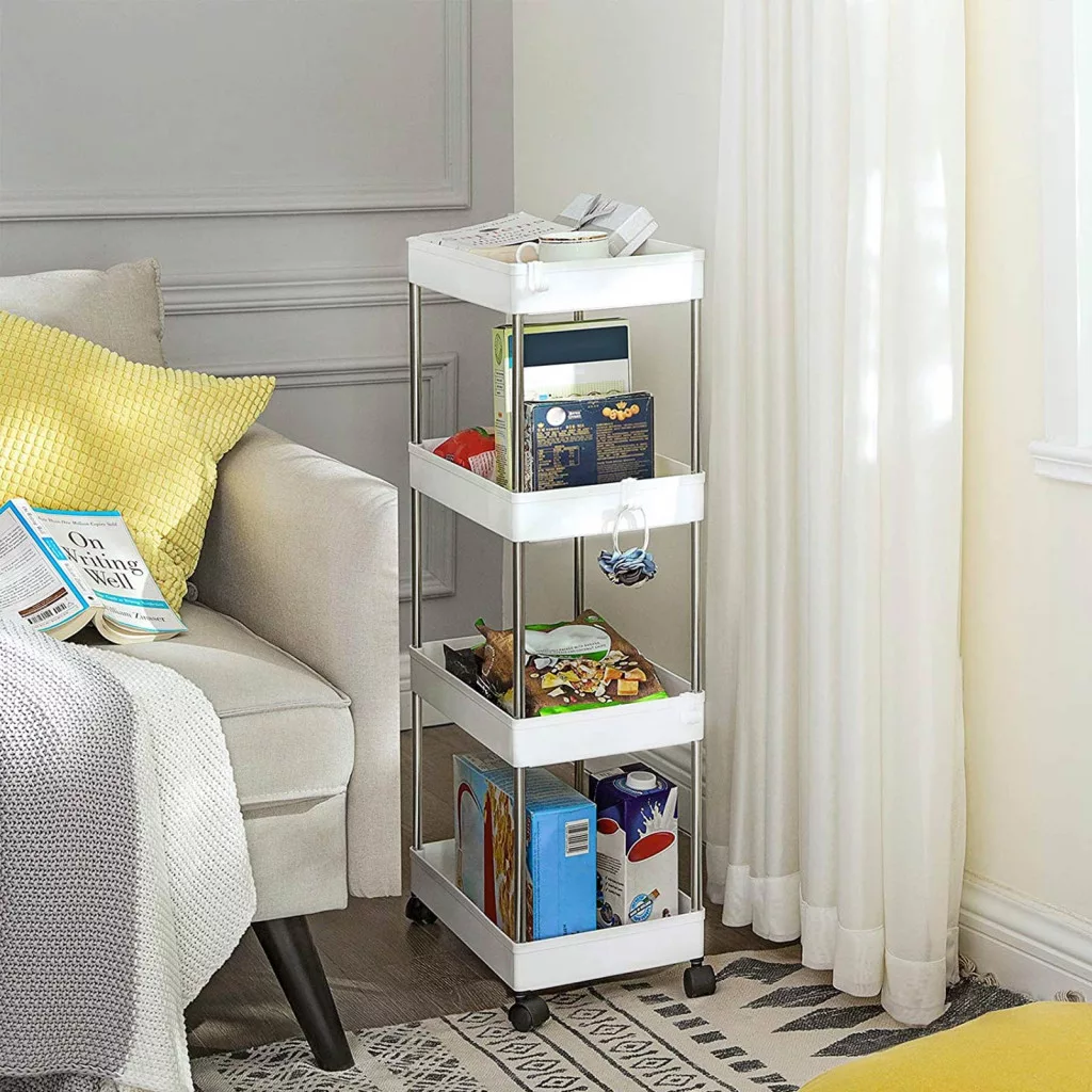 Sokoldalú, kompakt tárolási megoldás konyhába, fürdőszobába vagy irodába. A 4 szintes, kerekekkel ellátott kocsi maximálisan kihasználja a szűk helyeket, miközben stílusos megjelenést biztosít.