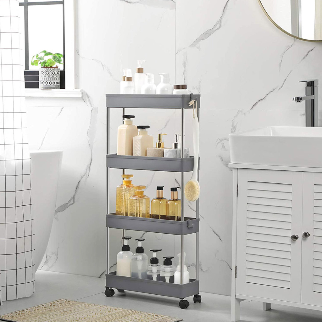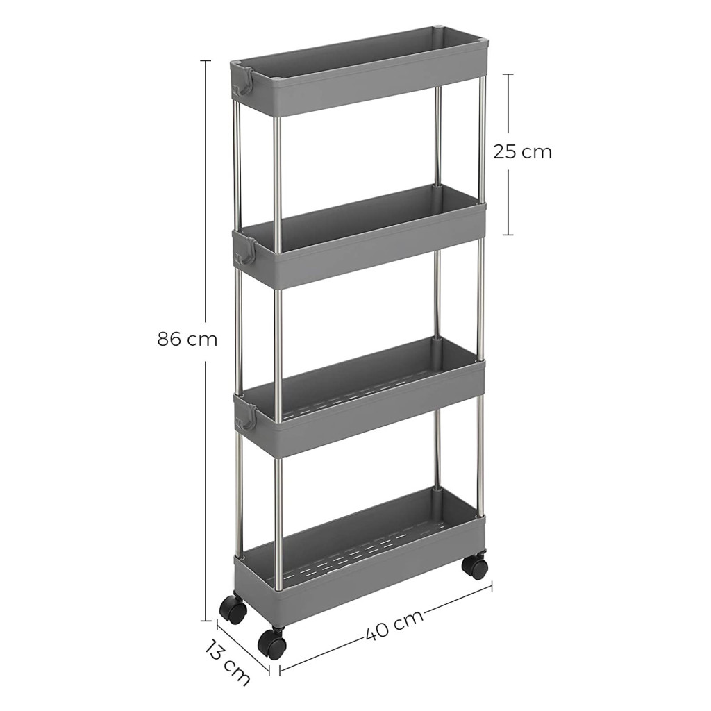 SONGMICS 4-Szintes Keskeny Görgős Tárolókocsi Szürke