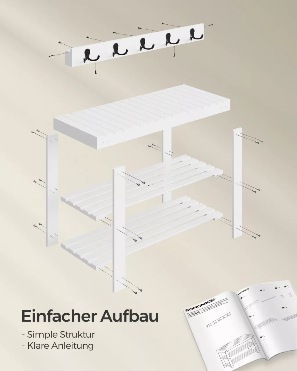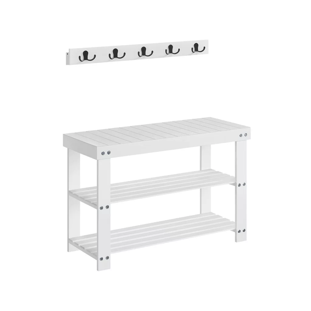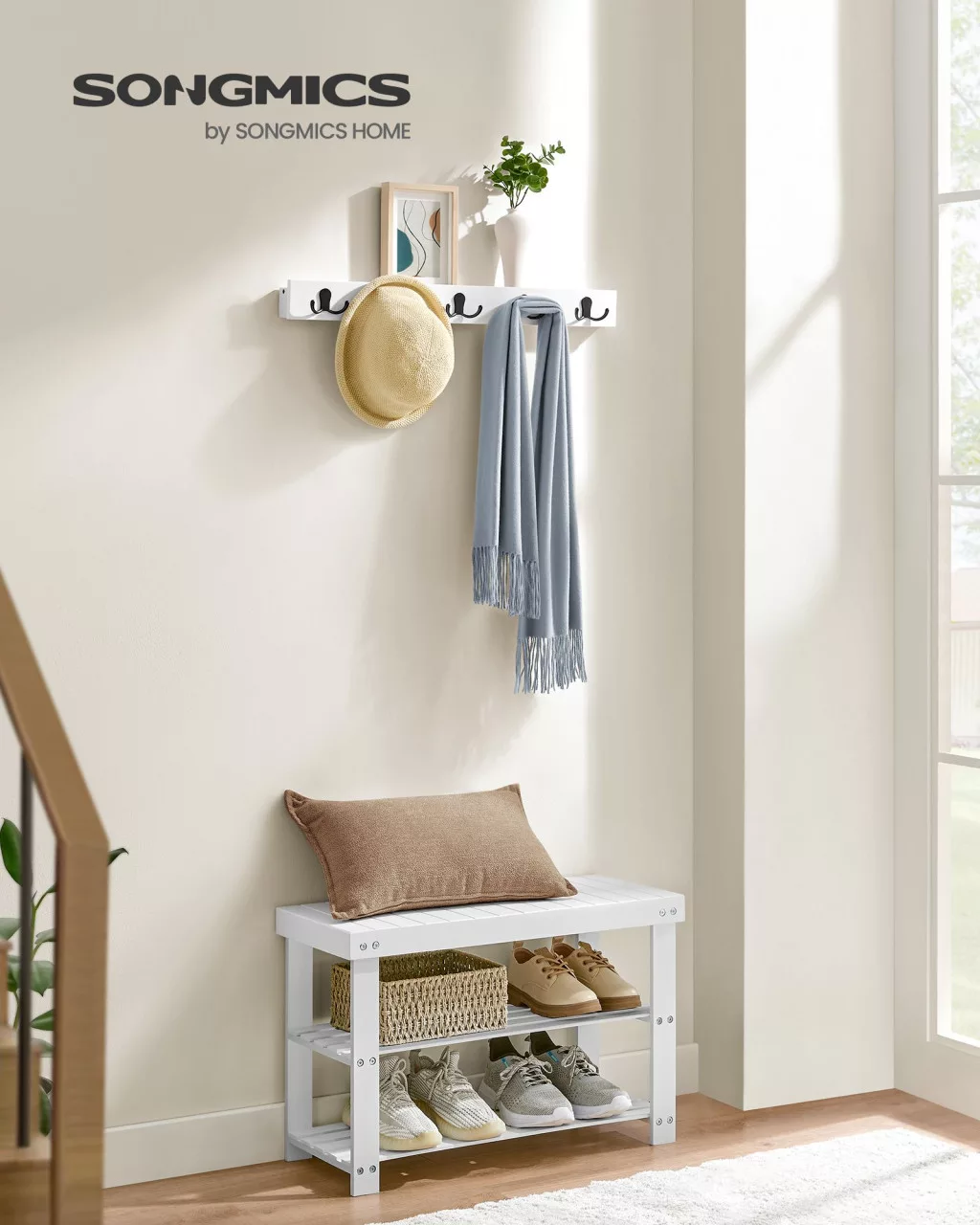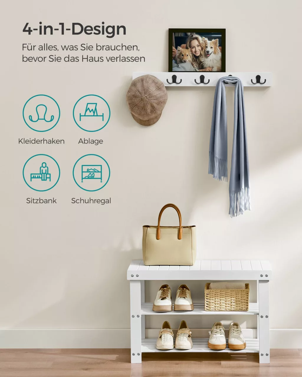 SONGMICS 4-az-1-ben Előszobai Állvány Fehér Cipőspolccal és Akasztóval
