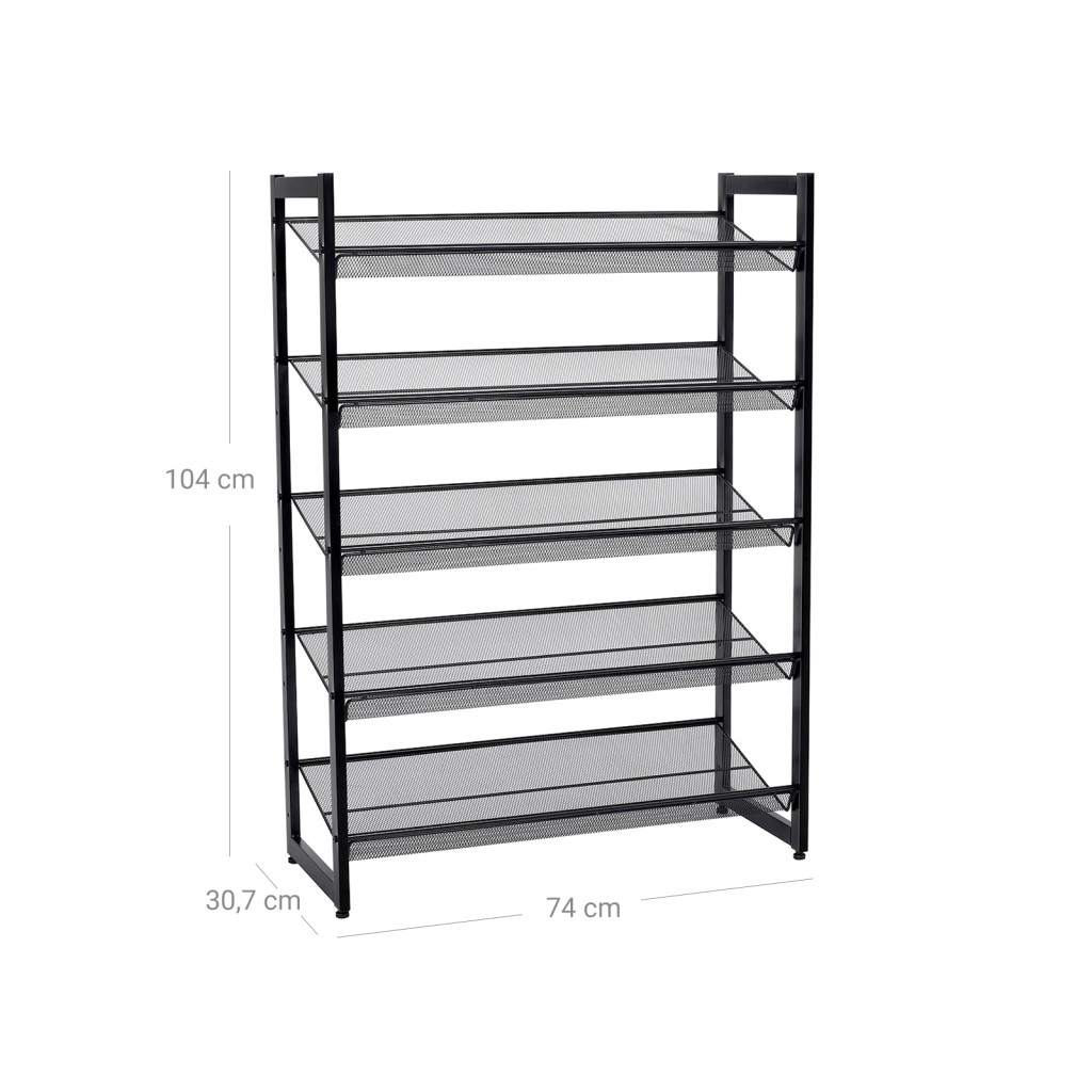 SONGMICS 5 Szintes Fém Hálós Cipőállvány Fekete