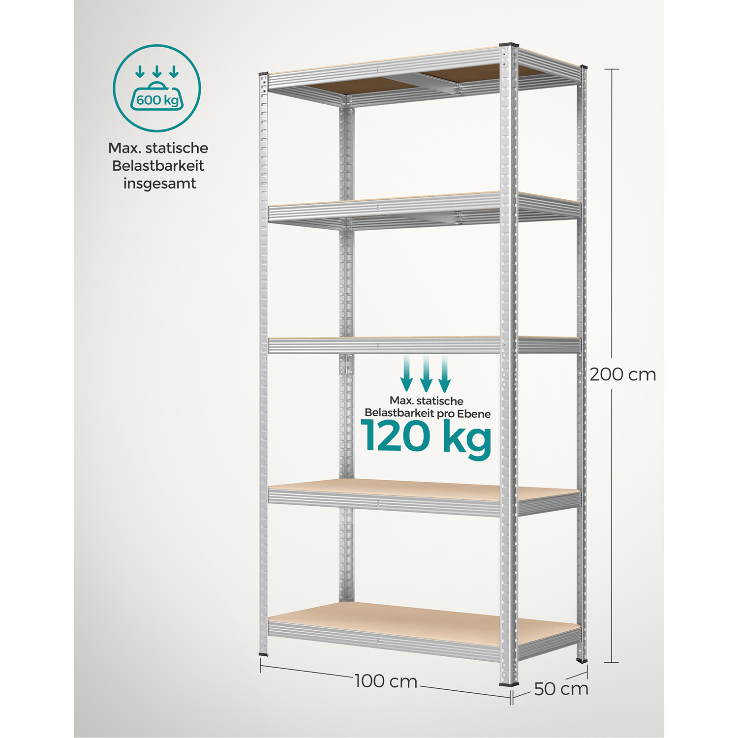 SONGMICS 5-Szintes Ipari Tárolóállvány Szett Acél Ezüst
