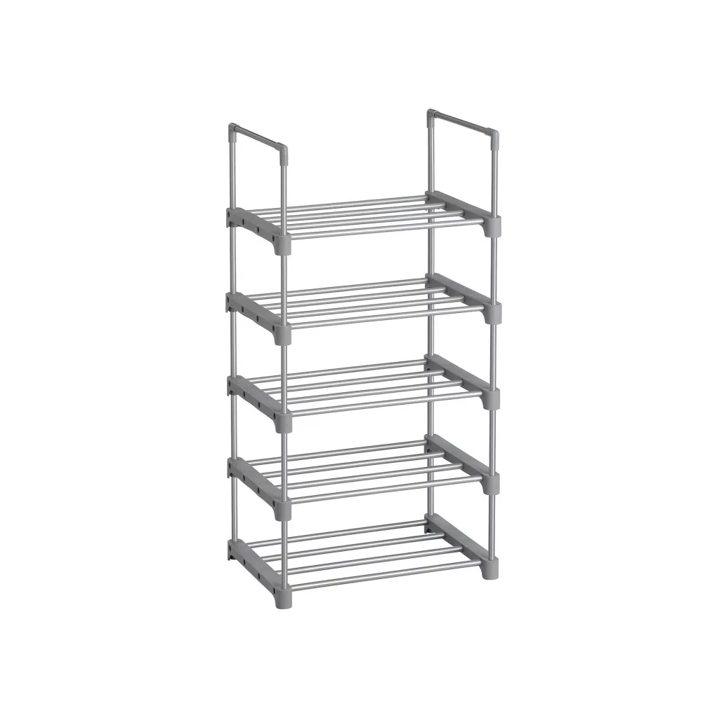 Kompakt és stabil 5-szintes cipőtároló állvány, amely tökéletes megoldást nyújt cipőinek rendszerezett tárolására. Egyszerűen összeszerelhető és testreszabható design jellemzi.