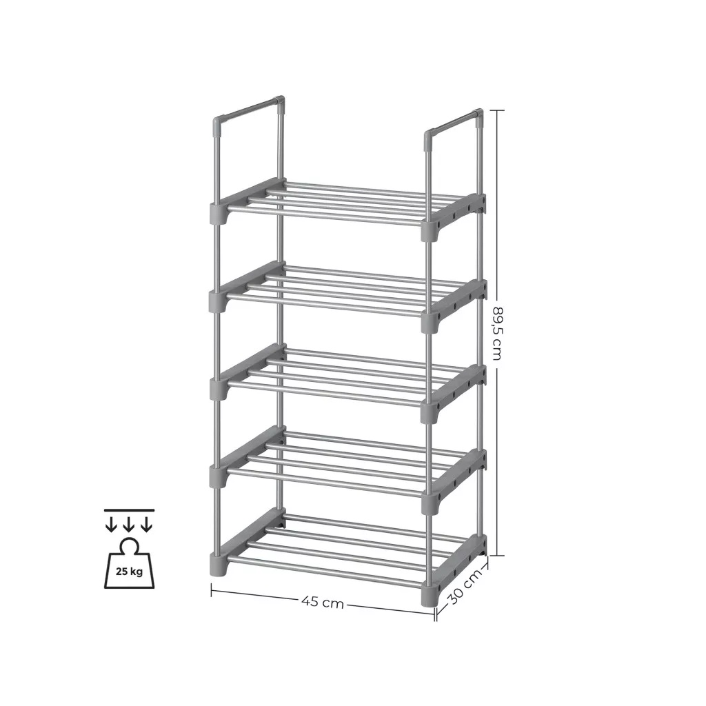 SONGMICS 5-szintes Fém Cipőtároló Állvány Szürke