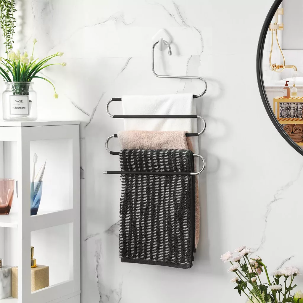 • Sokoldalú használat: Nadrágok, sálak, törölközők és kiegészítők tárolására