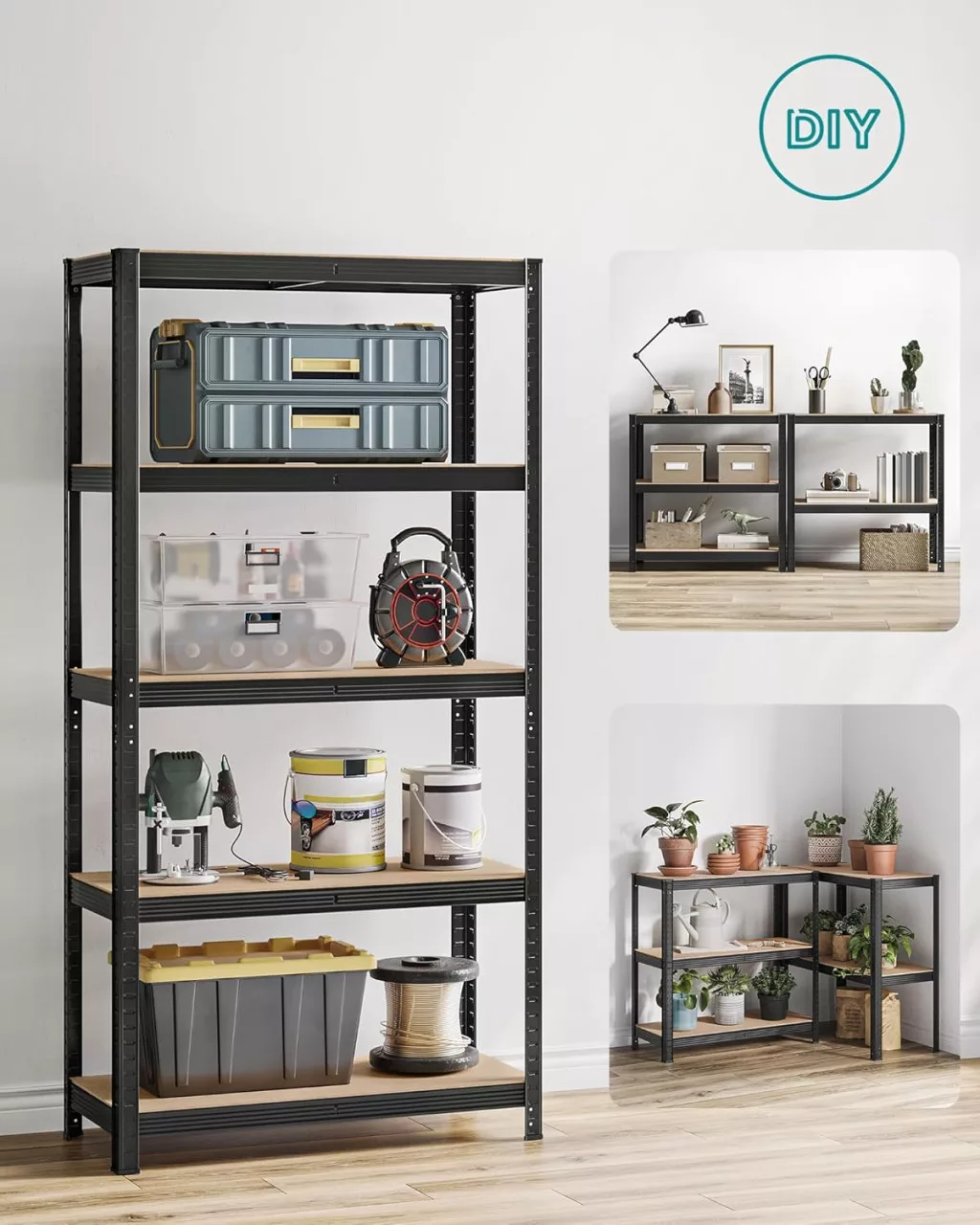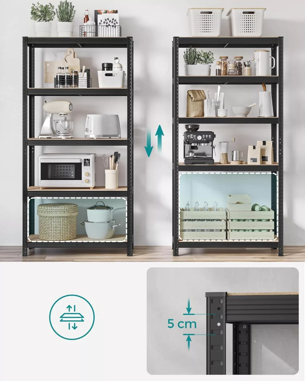 SONGMICS 5-szintes nehéz teherbírású tároló polcrendszer 2 db-os szett acél MDF fekete