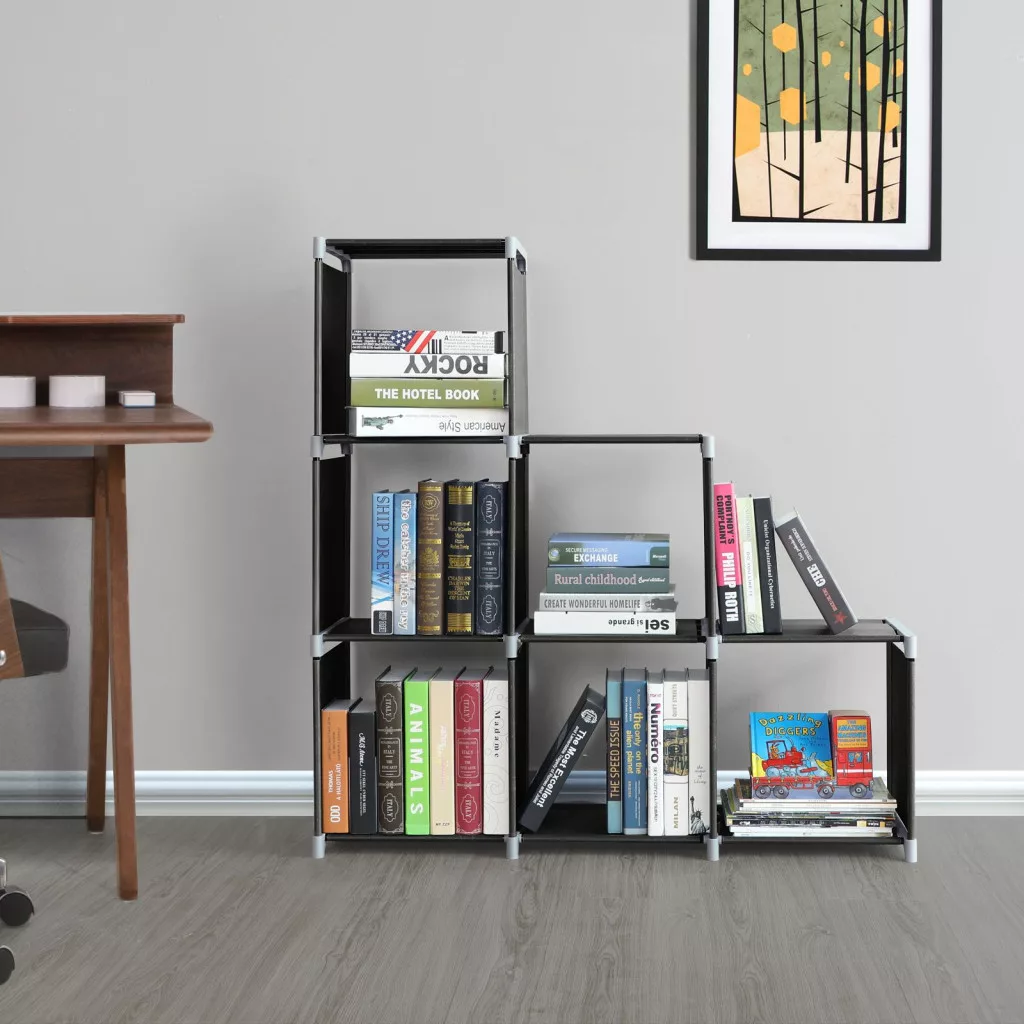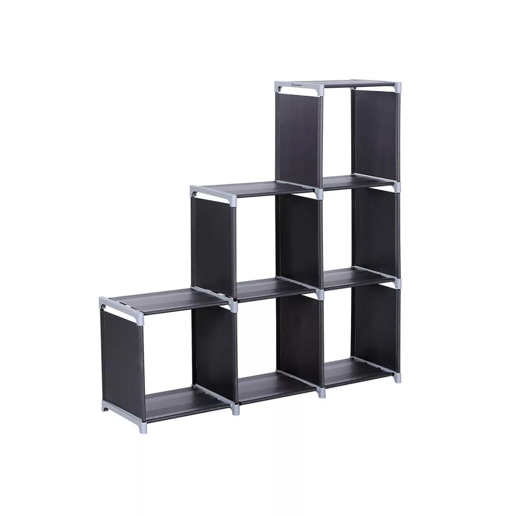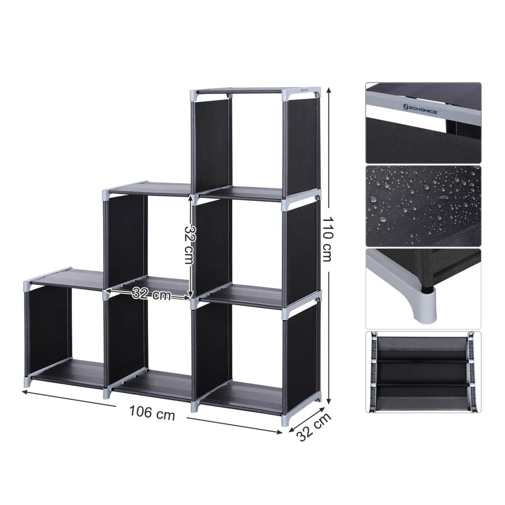 SONGMICS 6-Kockás Tárolópolc Lépcsőzetes Szoba Elválasztó Fekete