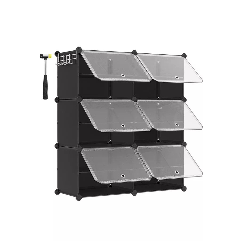 SONGMICS 6 rekeszes moduláris cipőtároló szekrény ajtókkal fekete