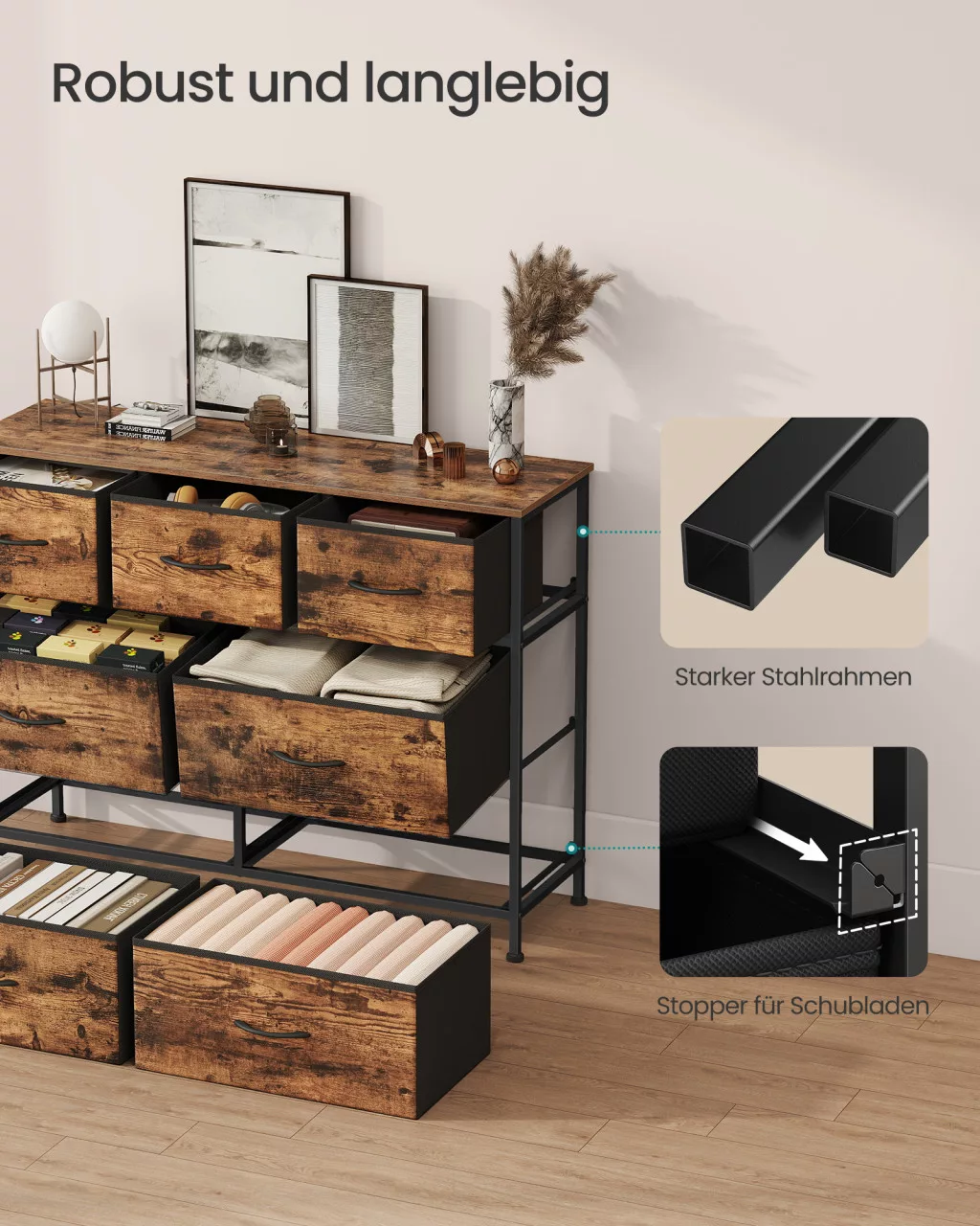 SONGMICS 7 fiókos komód acél MDF szövet rusztikus barna fekete