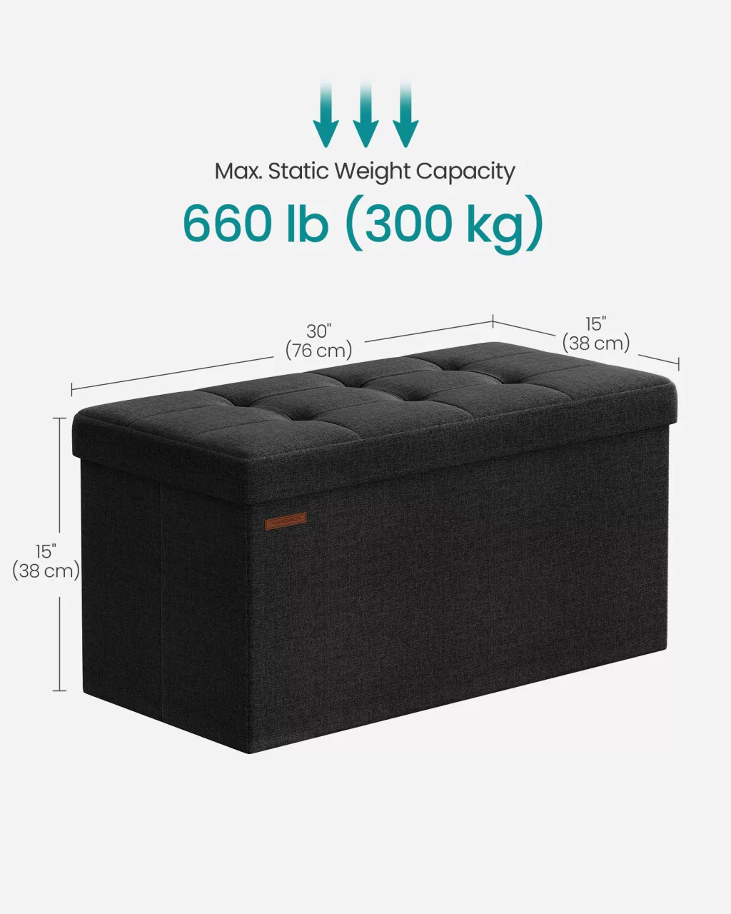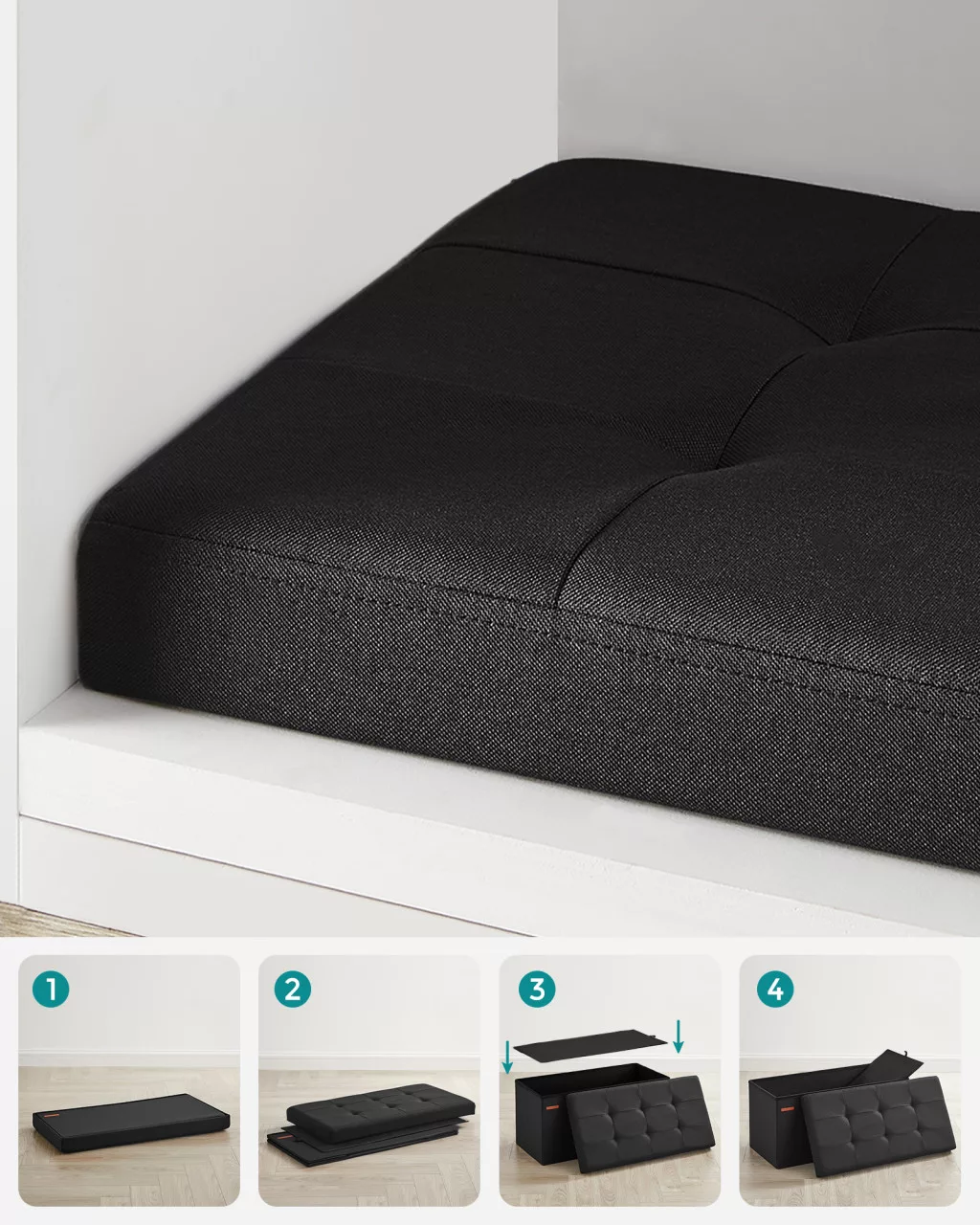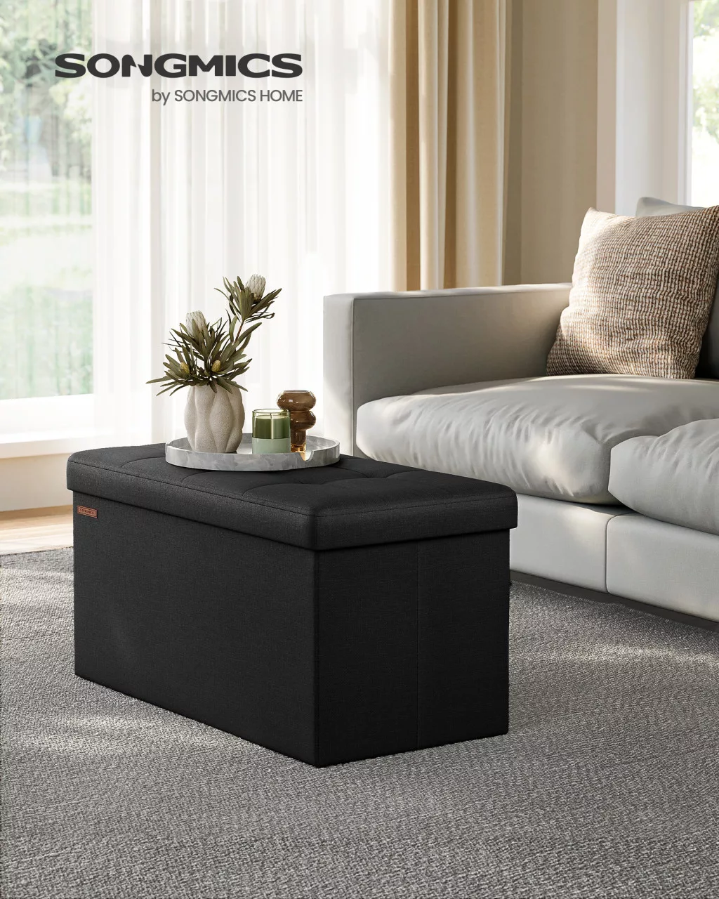 SONGMICS 76 cm összecsukható tároló ülőpad lábzsámoly fekete