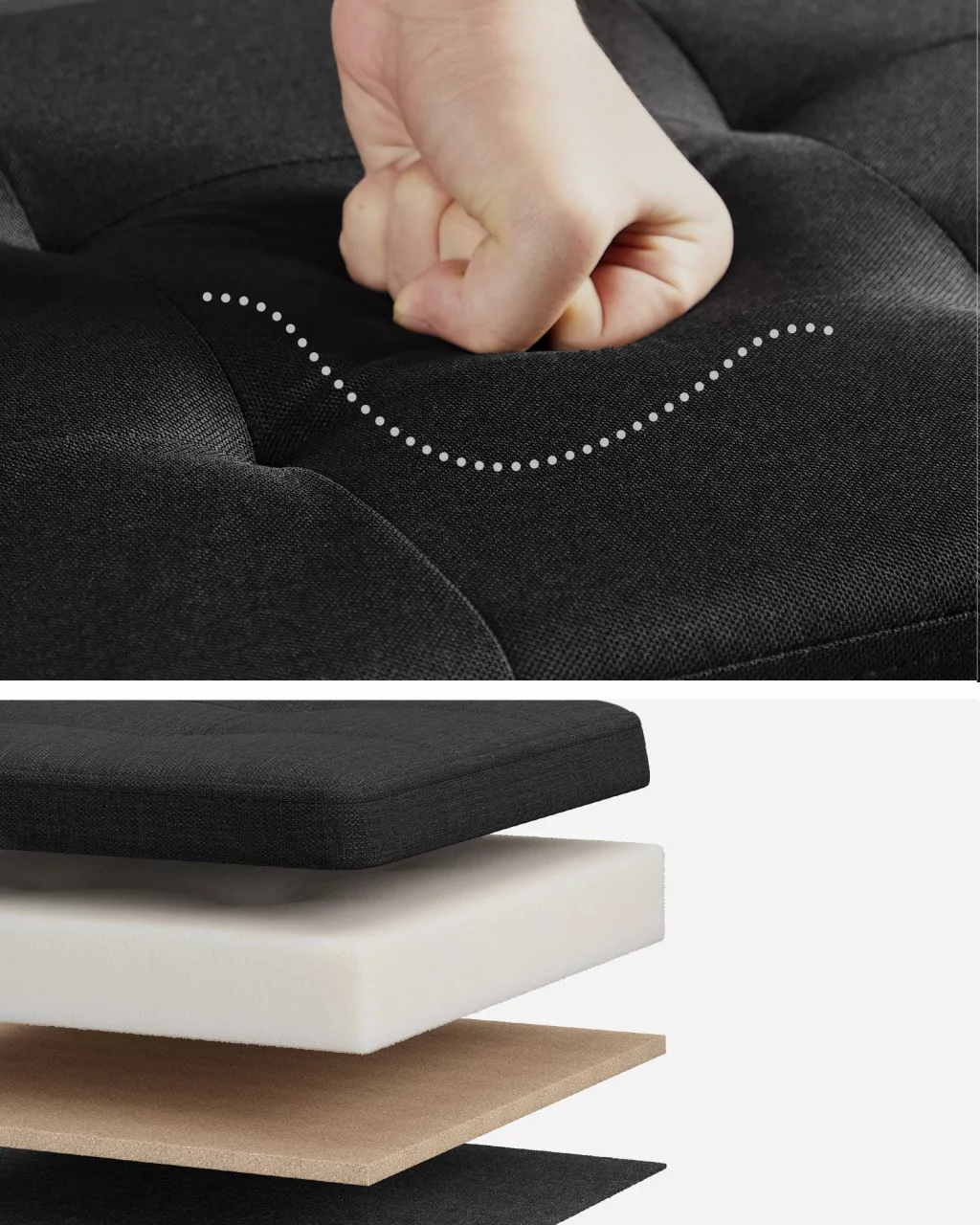 • Steppelt vászonszerű felület: Az elegáns fekete kárpit dupla rétegű anyaggal és nagy rugalmasságú habszivacssal tartós kényelmet és prémium megjelenést biztosít