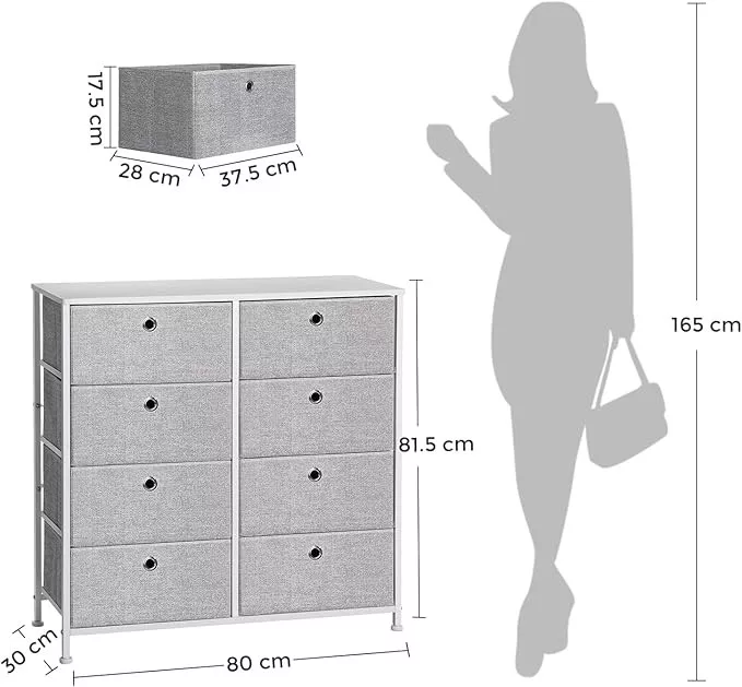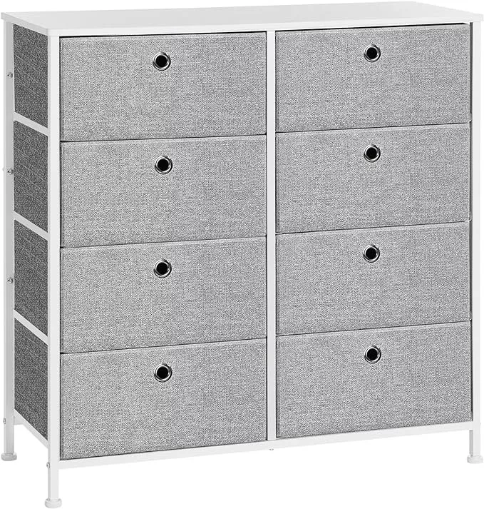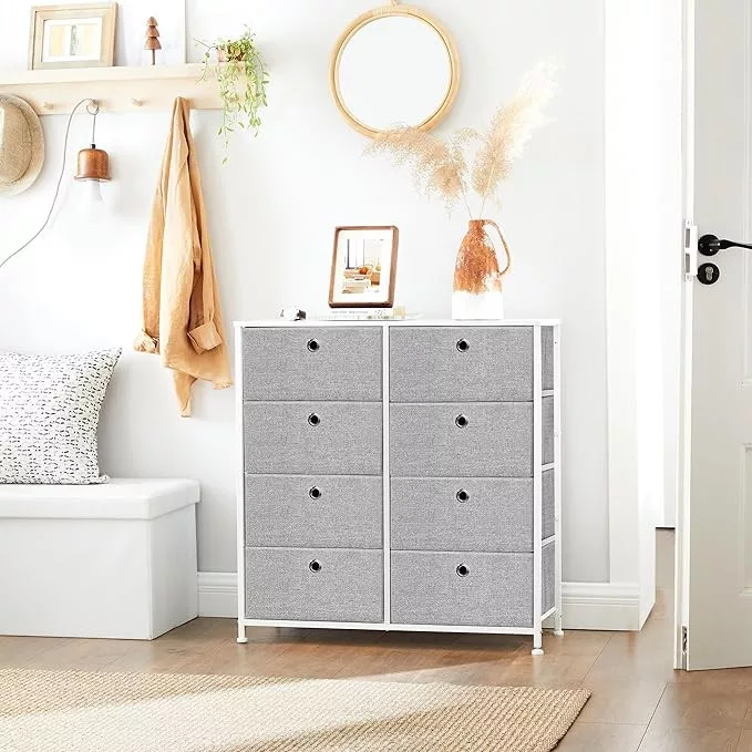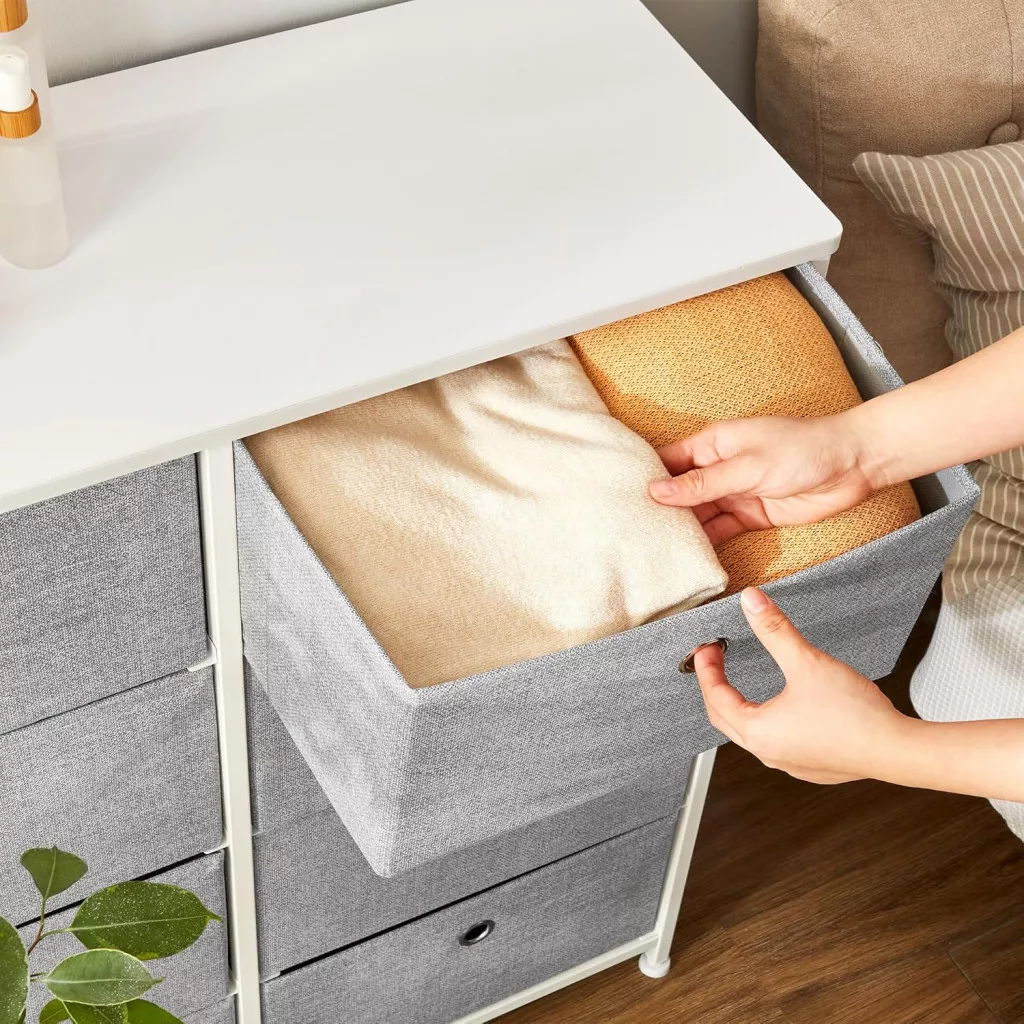 SONGMICS 8 Fiókos Tárolószekrény Textil Szürke-Fehér Fémvázas Komód