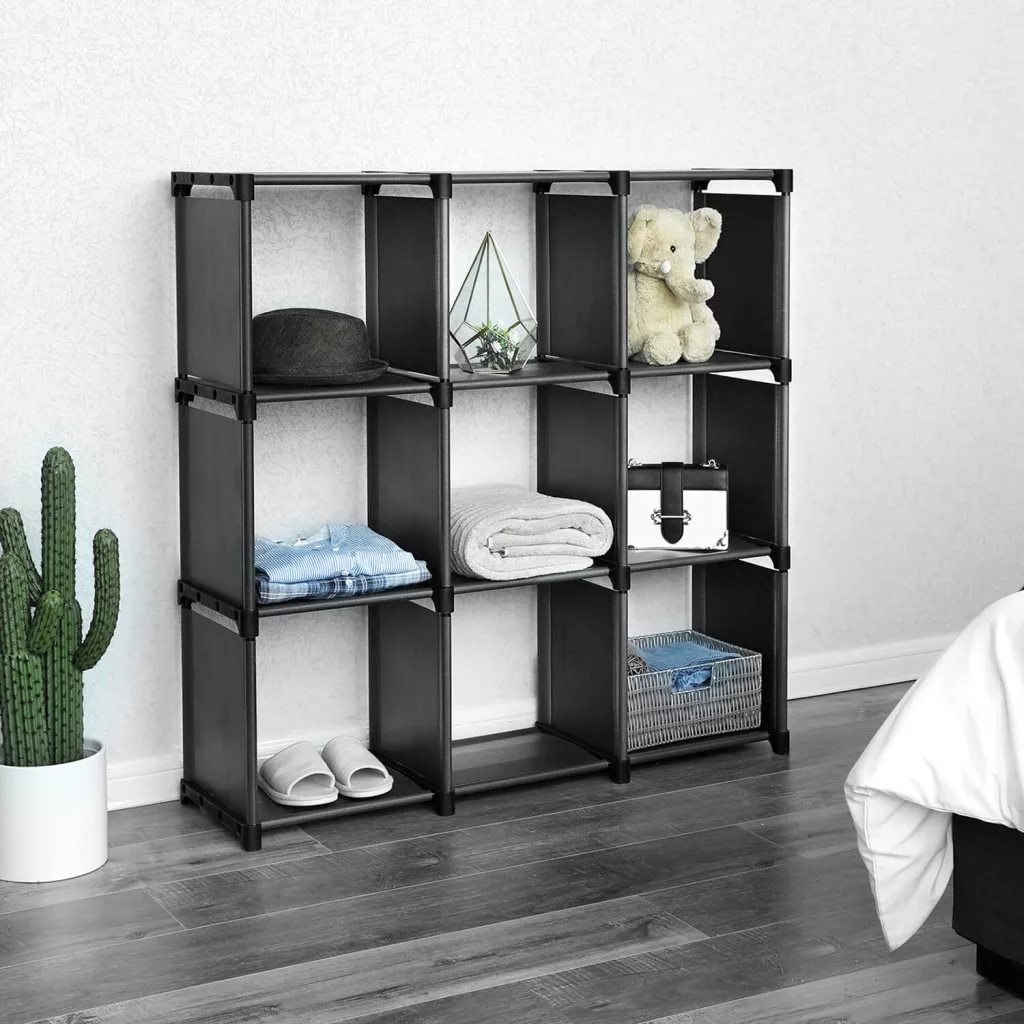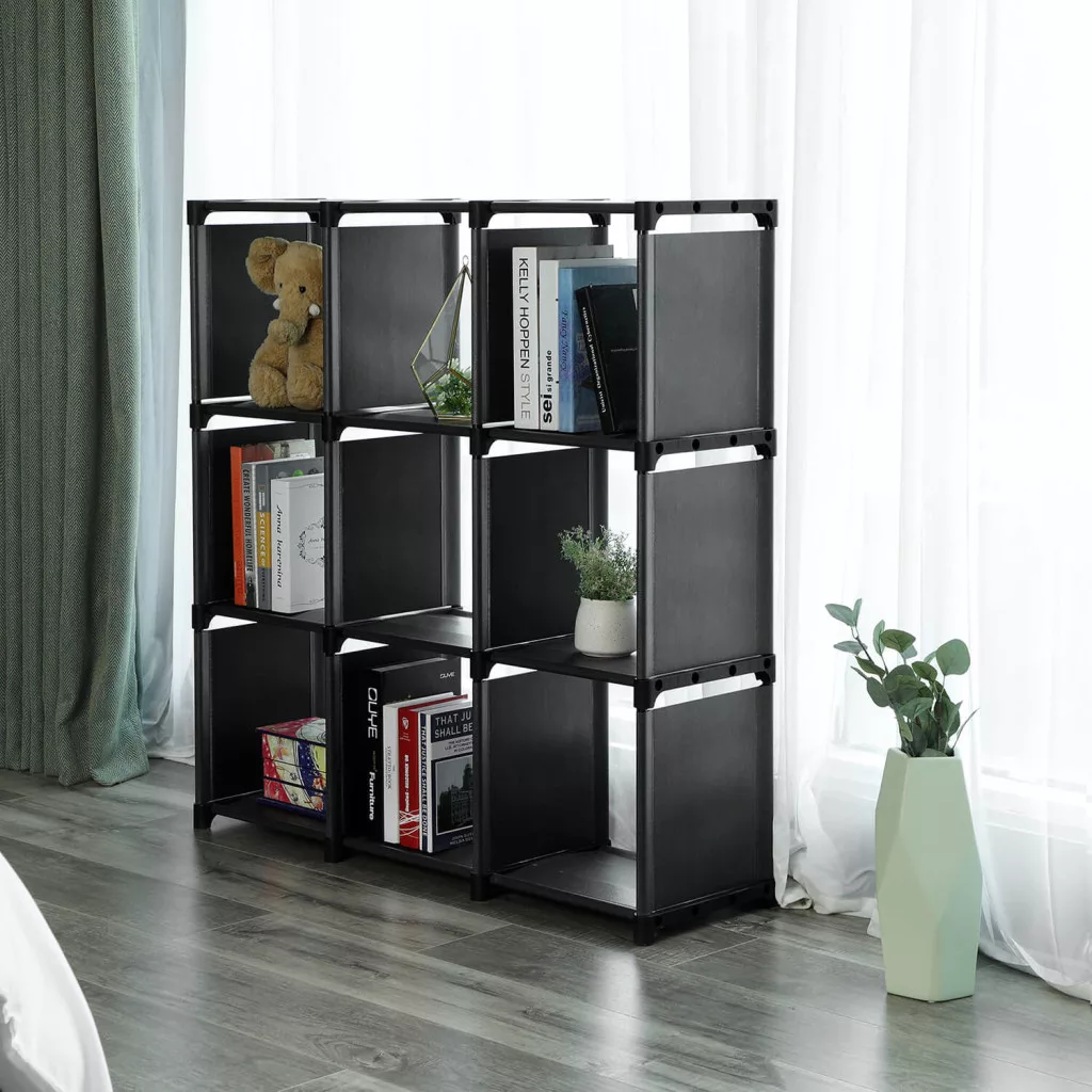 SONGMICS 9-Rekeszes DIY Tárolópolc Fekete Könyvespolc