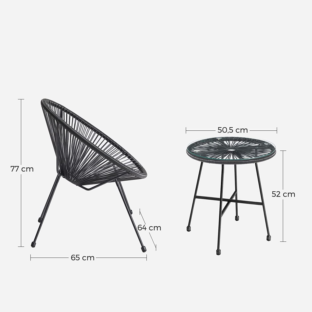A szett két ergonomikus kialakítású széket és egy stílusos, edzett üveglapos asztalt tartalmaz, amely ideális kiegészítője lehet teraszának, erkélyének vagy akár nappalijának is. A légies megjelenés és a geometrikus vonalvezetés könnyedén illeszkedik bármilyen környezetbe.