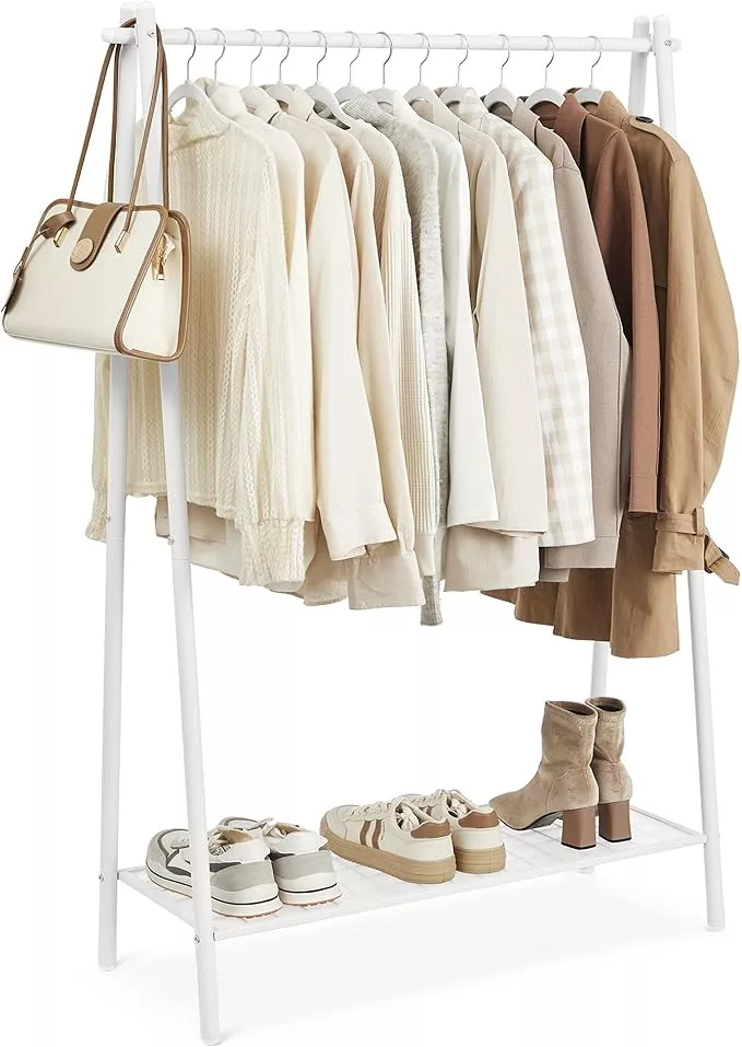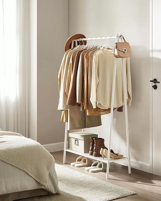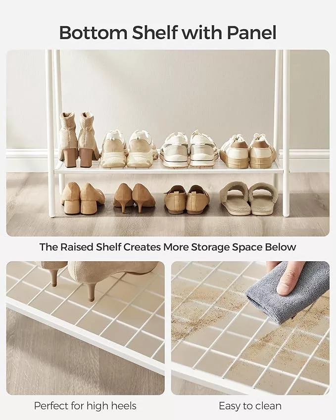 SONGMICS Acél Ruhaállvány Cipőtartó Polccal Fehér
