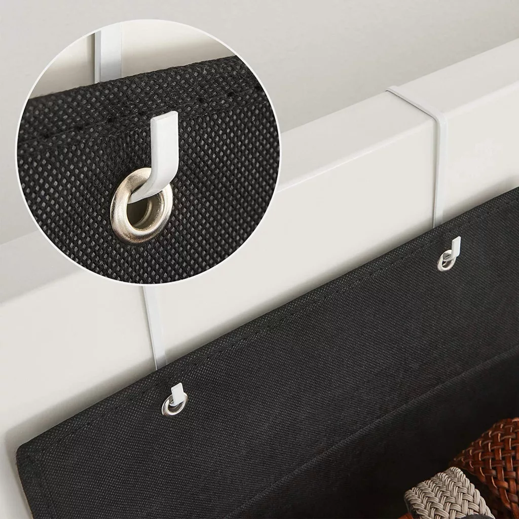 A speciálisan tervezett akasztók biztonságosan rögzítik az egységet, miközben védik az ajtót a sérülésektől. A zsebek közötti optimális távolság könnyű hozzáférést biztosít, így egy kézzel is könnyen kezelhetők a tárolt dolgok.