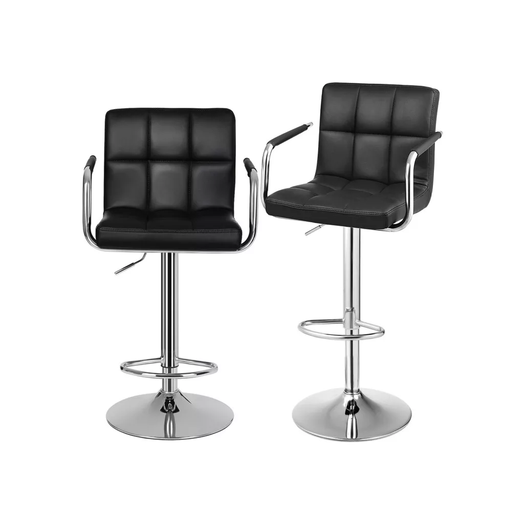 Modern, állítható magasságú bárszék páros króm alappal és kényelmes PU bőr kárpitozással, tökéletes választás konyhapulthoz vagy bárpulthoz.