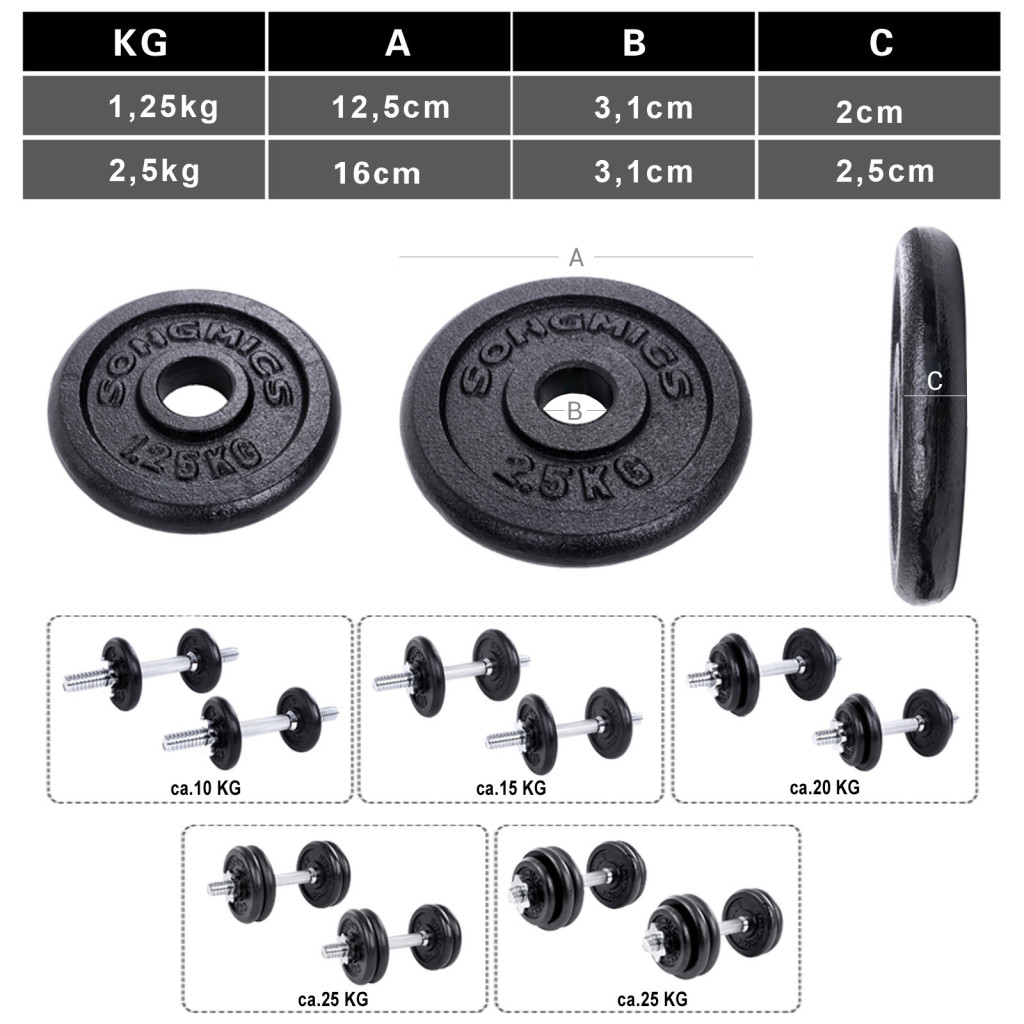 SONGMICS Állítható Öntöttvas Súlyzókészlet 2x15 kg Acél Markolattal Fekete