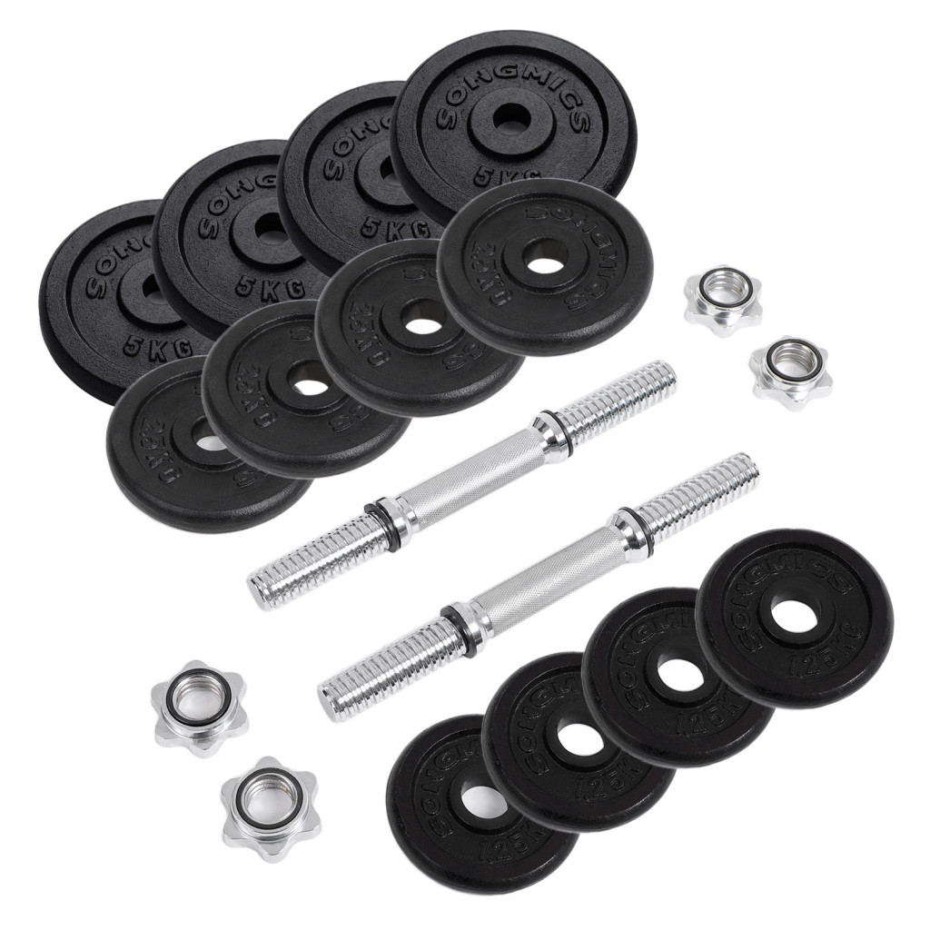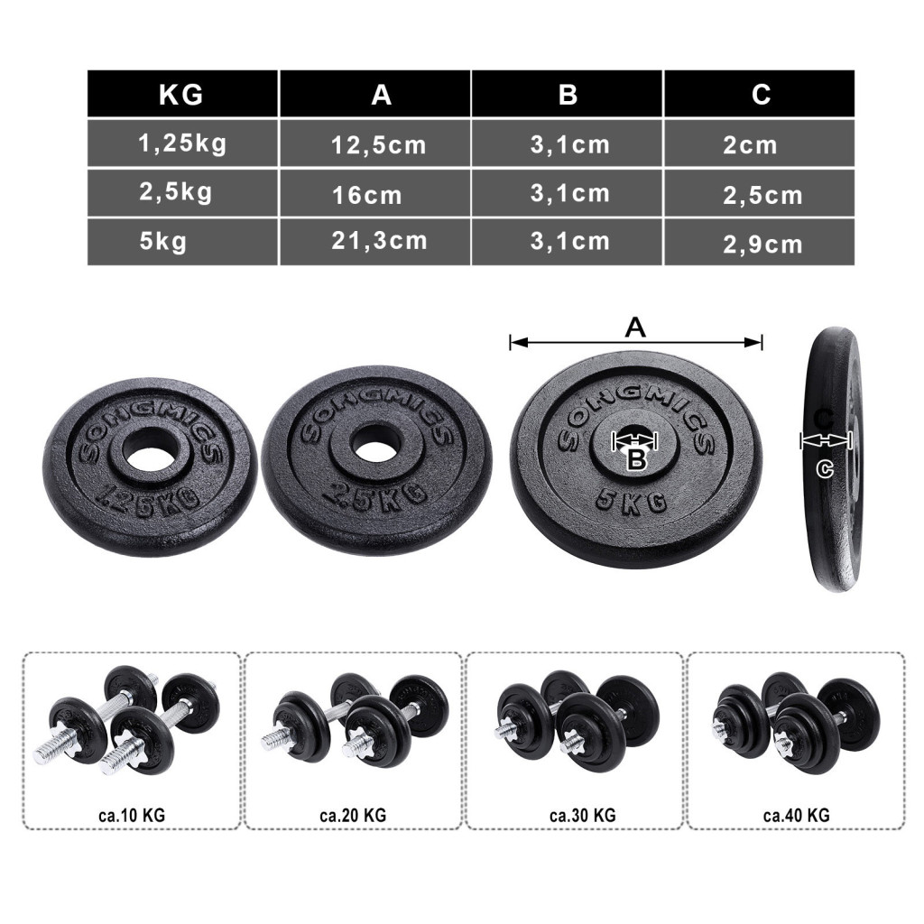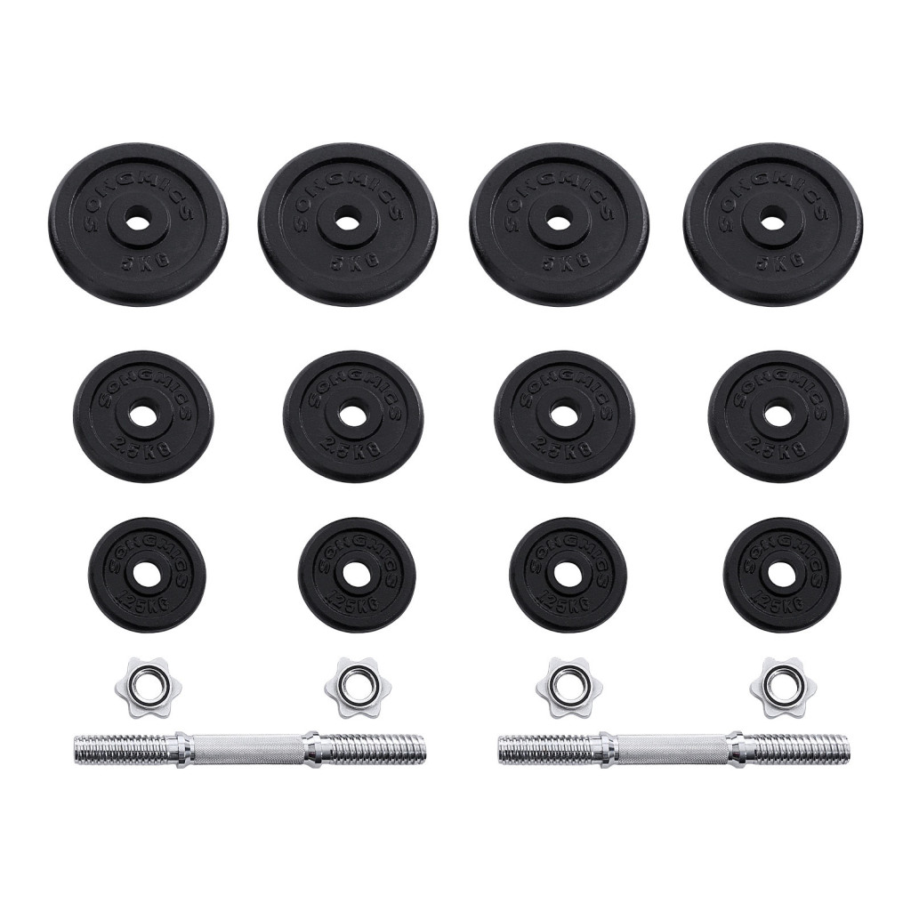 Ez a prémium minőségű SONGMICS súlyzókészlet tökéletes választás mind kezdő, mind haladó edzők számára. A porszórt öntöttvas tárcsák és a recézett acél markolat tartós és biztonságos edzést garantál. A készlet különböző súlyú tárcsái lehetővé teszik a fokozatos terhelésnövelést.