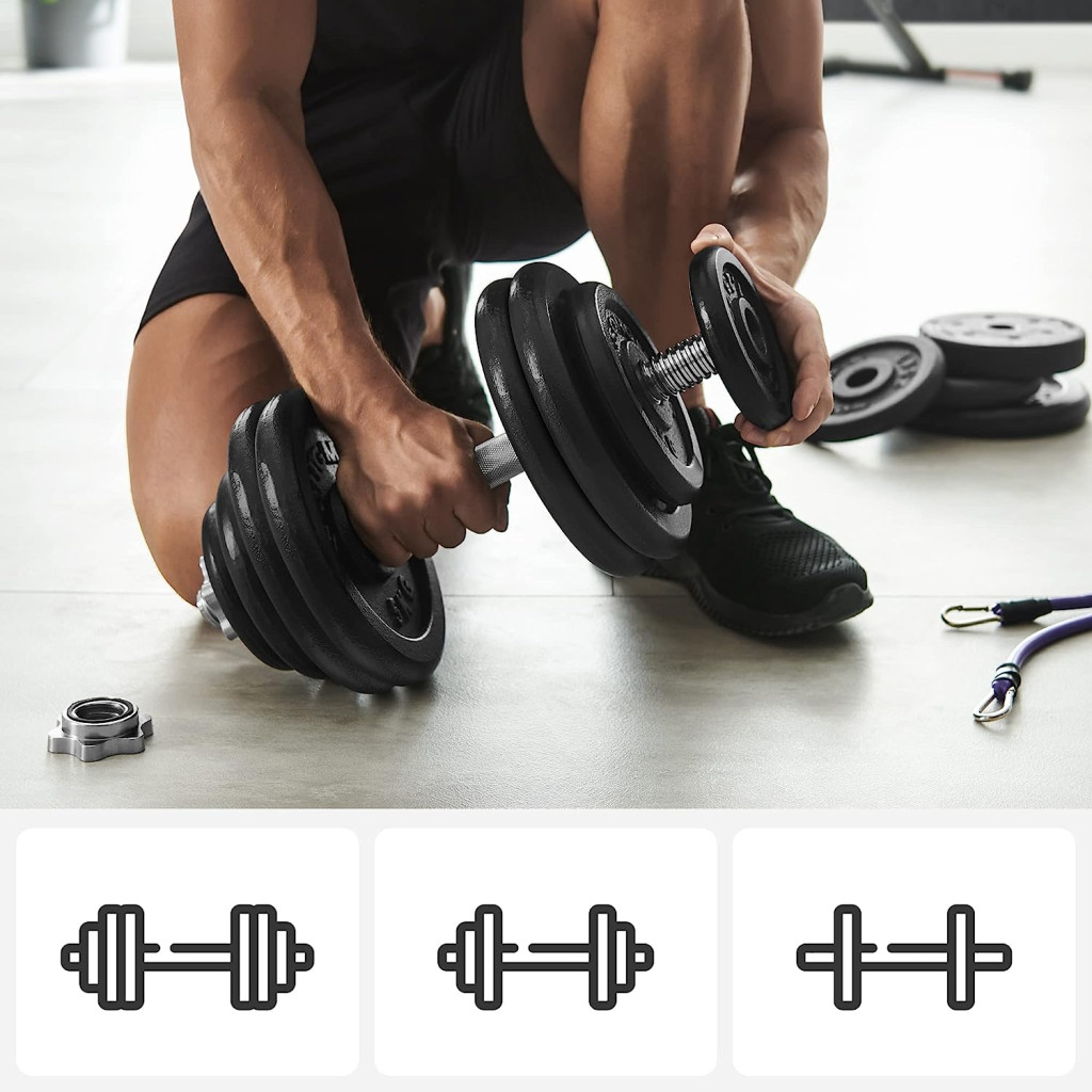 SONGMICS Állítható Öntöttvas Súlyzókészlet 30 kg Csúszásmentes Markolattal Fekete