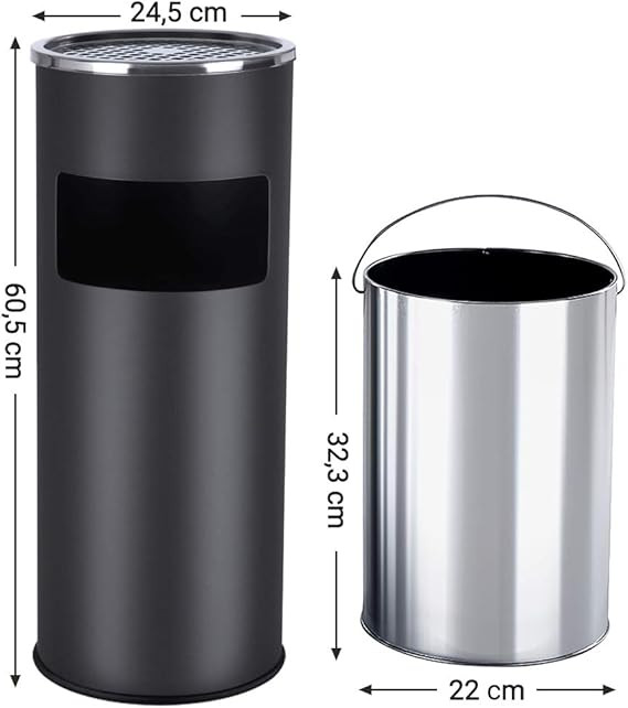 Ez a modern kialakítású, fekete színű álló hamutartó és szemeteskuka ideális választás mind beltéri, mind kültéri használatra. A rozsdamentes acél konstrukció tartósságot és időtálló megjelenést biztosít, míg a letisztult dizájn harmonikusan illeszkedik bármilyen környezetbe.