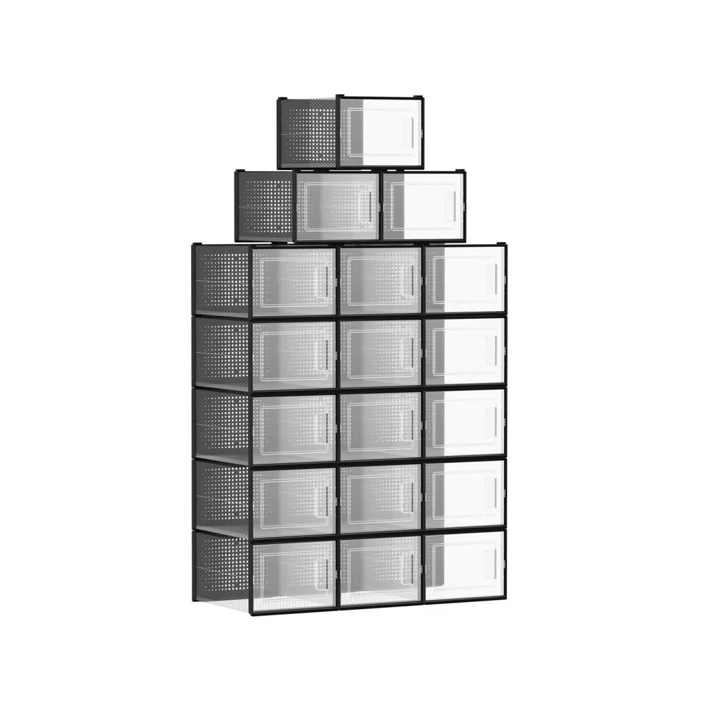 SONGMICS Átlátszó Cipősdoboz Szett 18 db Összehajtható és Egymásra Rakható Fekete