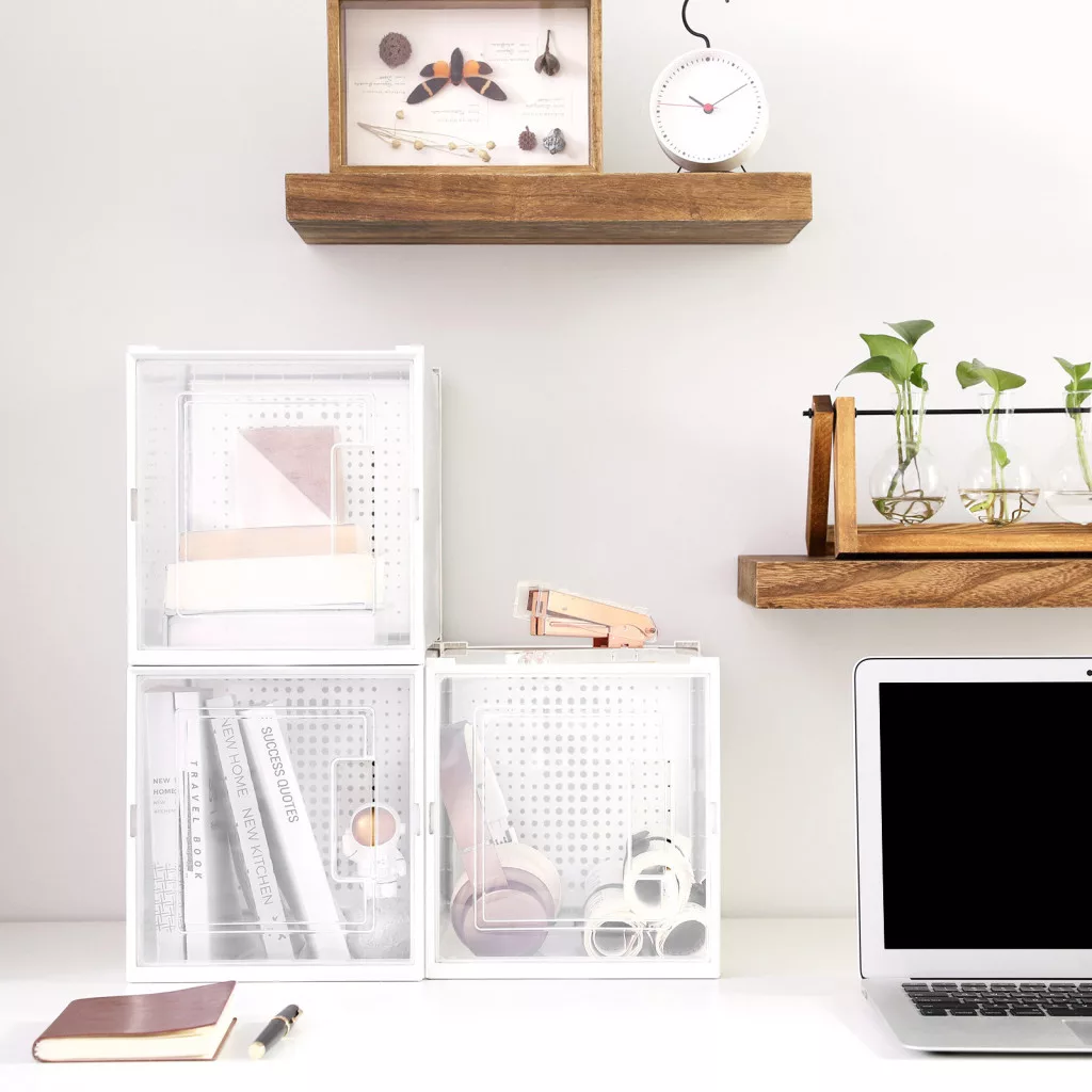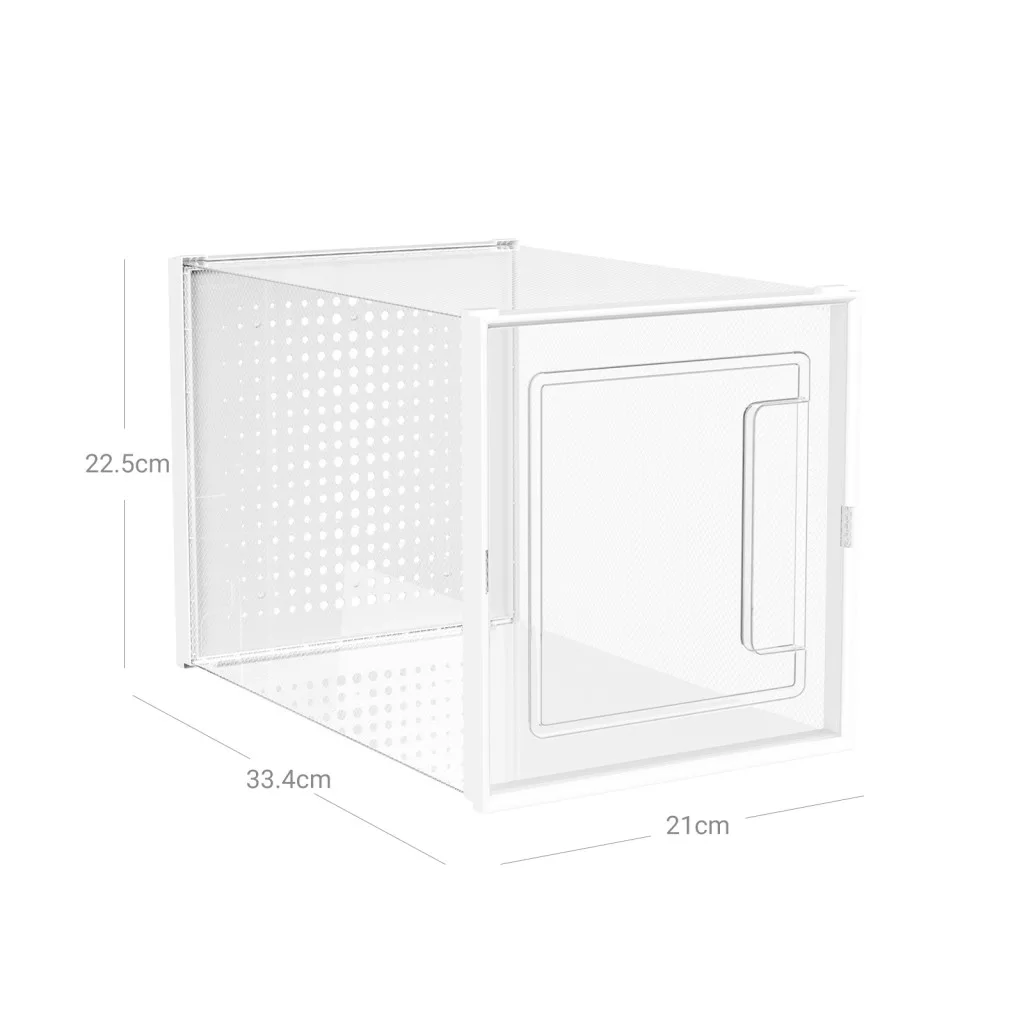 A dobozok innovatív szellőzőrendszerrel rendelkeznek, amely megóvja cipőit a nedvességtől és a nem kívánt szagoktól. A moduláris kialakítás lehetővé teszi a dobozok egymásra helyezését, így maximálisan kihasználhatja a rendelkezésre álló teret.