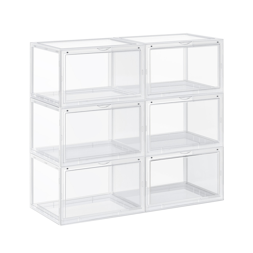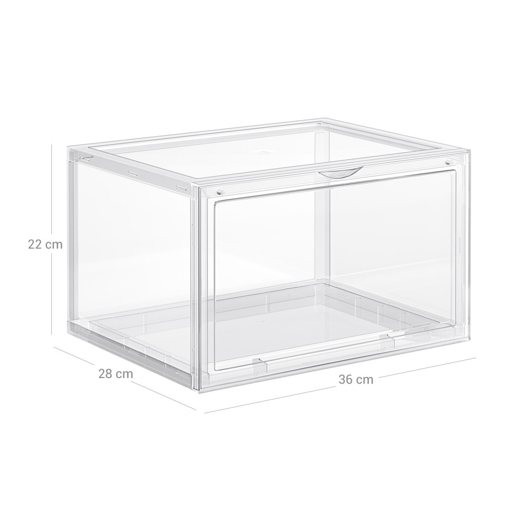 SONGMICS Átlátszó Cipőtároló Szett 6 db Egymásra Rakható Cipősdoboz Nagy Méretű Cipőkhöz