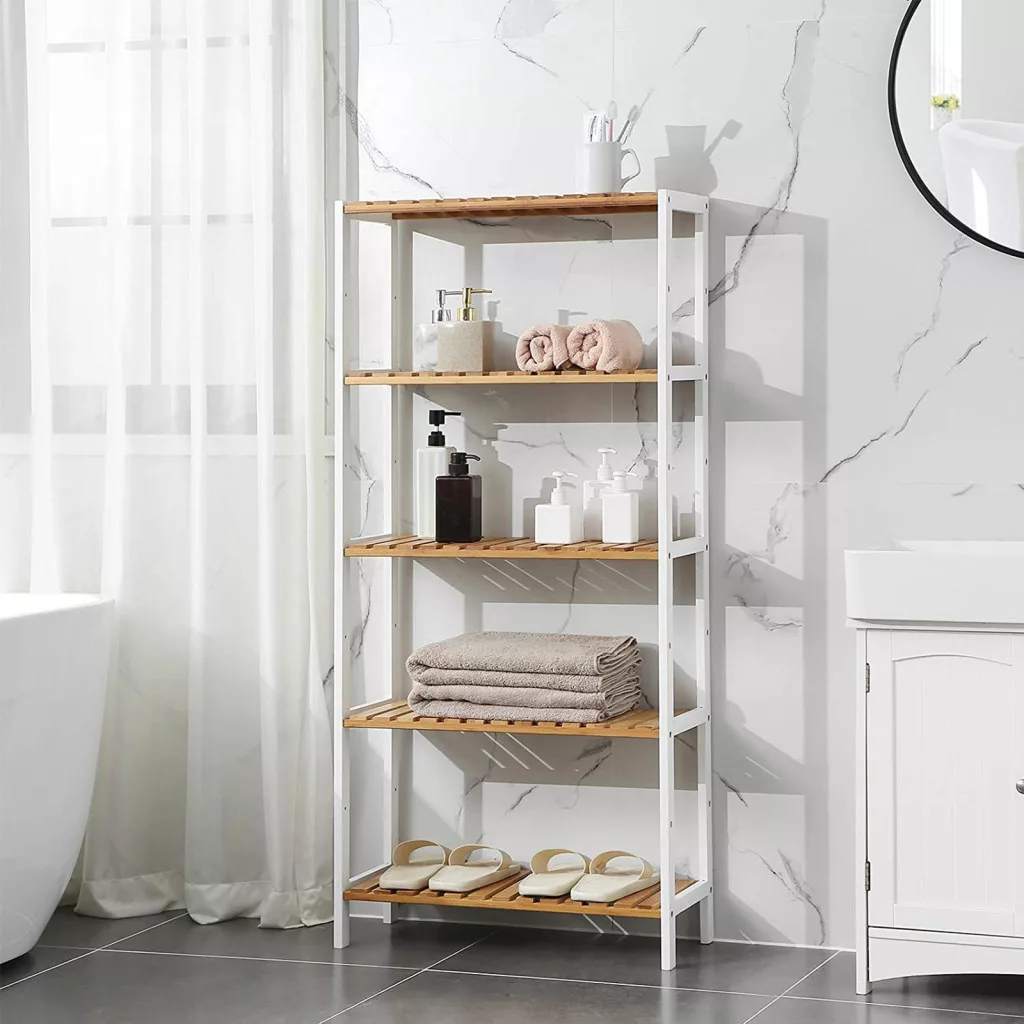 SONGMICS Bambusz Állvány 5-Szintes Állítható Tárolópolc Fehér-Natúr