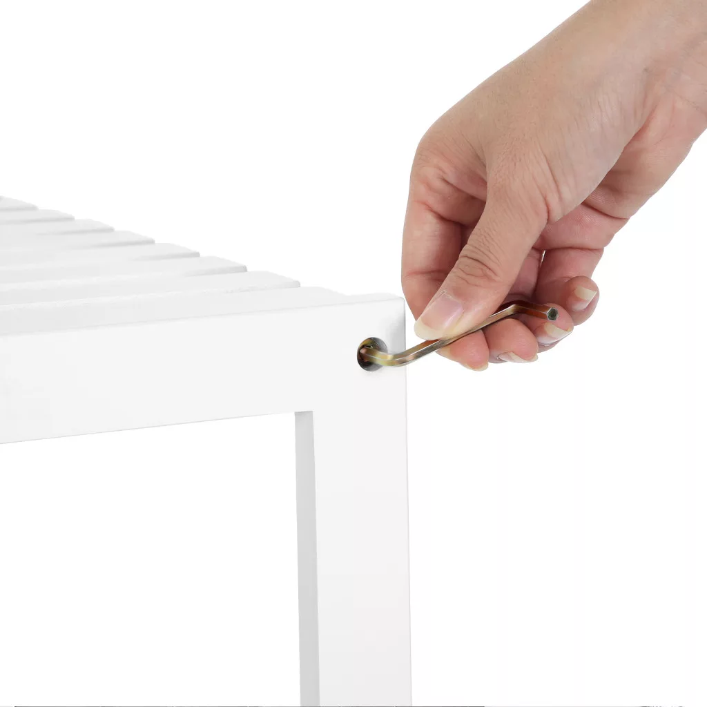 Ez a modern, fehér bambusz állvány egyesíti a funkcionalitást és az esztétikumot. A 9 különböző magasságban állítható polcok lehetővé teszik a személyre szabott tárolást, míg a tartós bambusz szerkezet garantálja a hosszú élettartamot.
