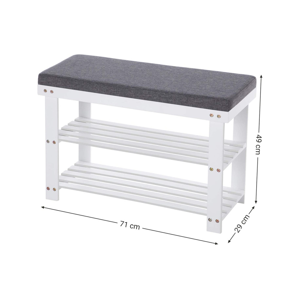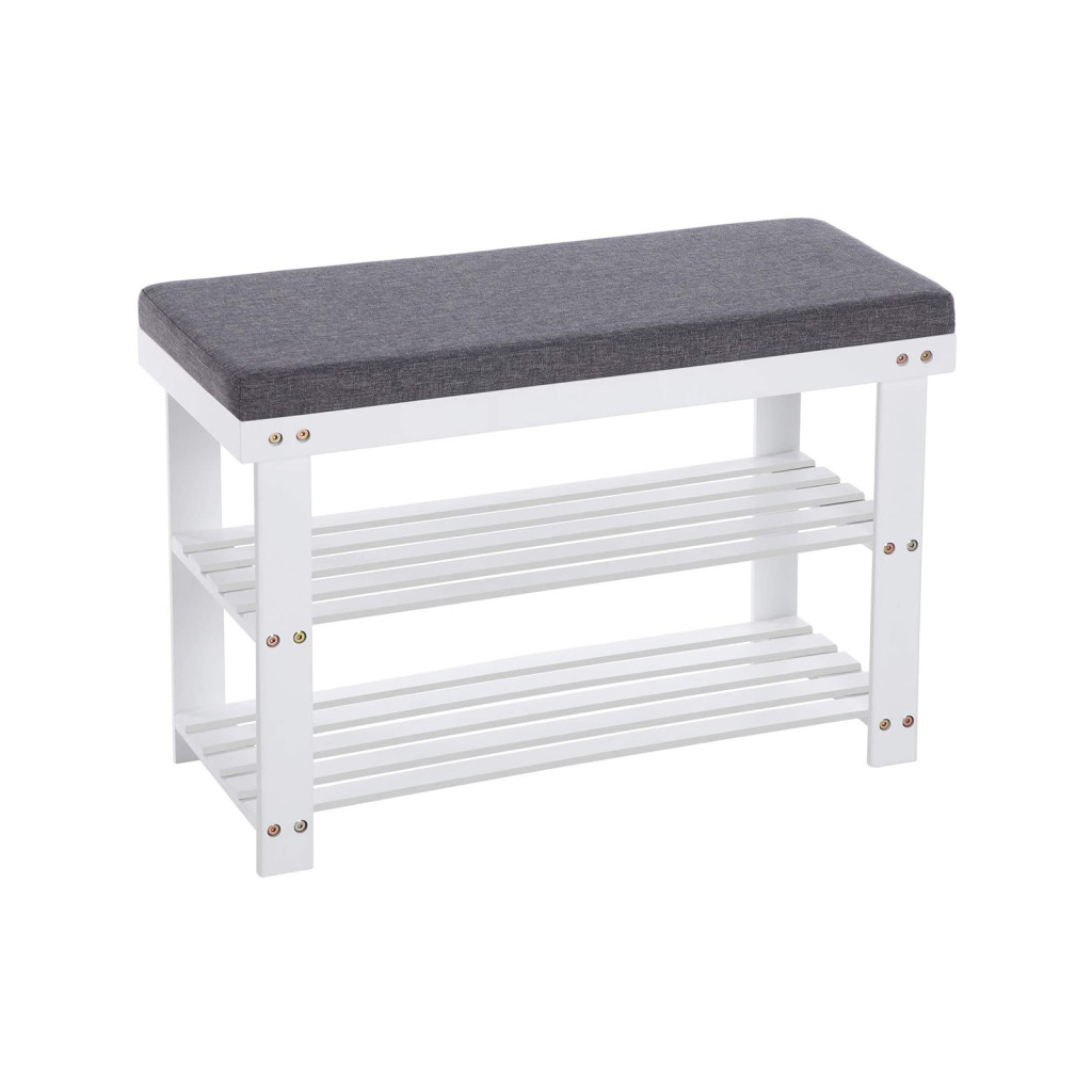 SONGMICS Bambusz Cipőspad Kényelmes Ülőfelülettel Fehér-Szürke