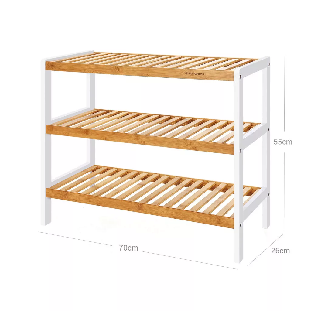 SONGMICS Bambusz Cipőtároló Állvány 3-Szintes Fehér-Natúr