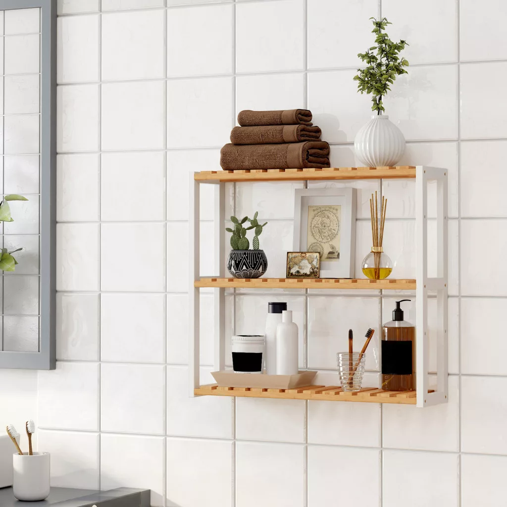 Sokoldalú, 3-szintes bambusz tárolópolc, amely falra szerelhető vagy szabadon álló megoldásként is használható. Természetes bambusz és fehér színkombinációja modern és elegáns megjelenést kölcsönöz bármely helyiségnek.