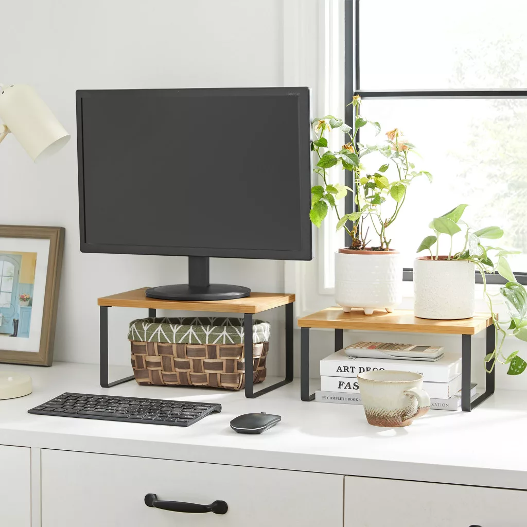 Ez az elegáns bambusz és fém kombinációjú polcrendszer tökéletes megoldást kínál a konyhai rendszerezéshez. A két különböző méretű polc rugalmasan használható egymásra helyezve, L-alakban vagy külön-külön, így maximálisan kihasználhatja a rendelkezésre álló teret.