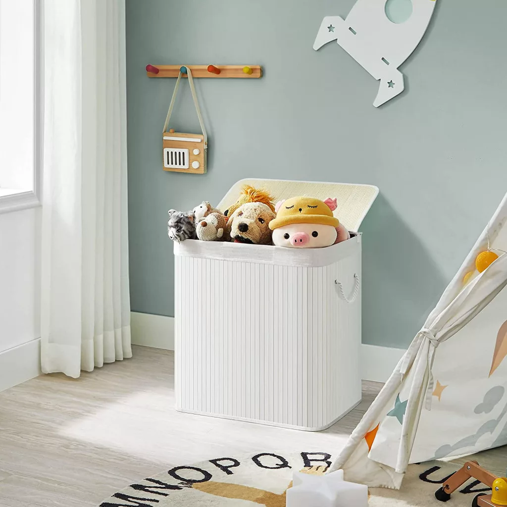 A tartós bambusz szerkezet és a mosható pamut belső zsák egyesíti a funkcionalitást a praktikussággal. Az oldalsó fogantyúk megkönnyítik a mozgatást, az összecsukható kialakítás pedig helytakarékos tárolást biztosít használaton kívül.