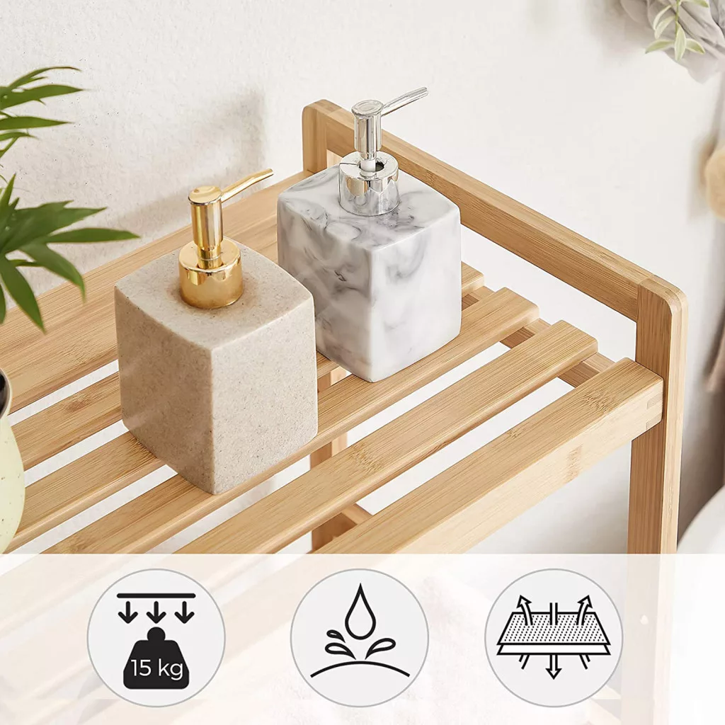SONGMICS Bambusz Tárolóállvány 3-Szintes Fürdőszobai Polc Természetes