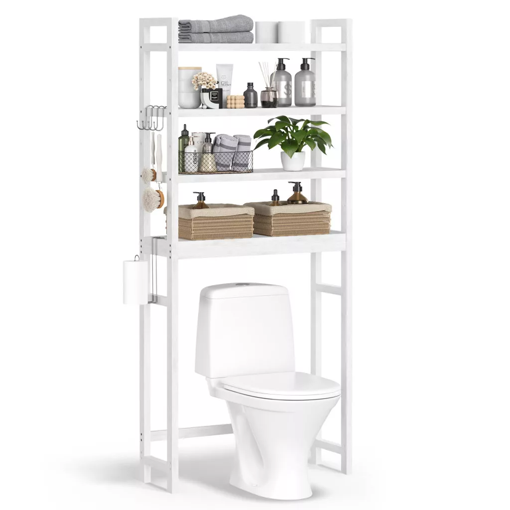 SONGMICS Bambusz WC Fölötti Állvány 4-Szintes Fehér Fürdőszobai Tároló
